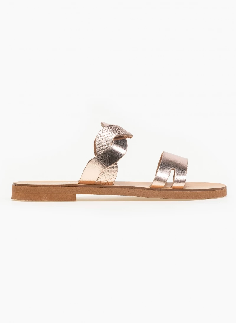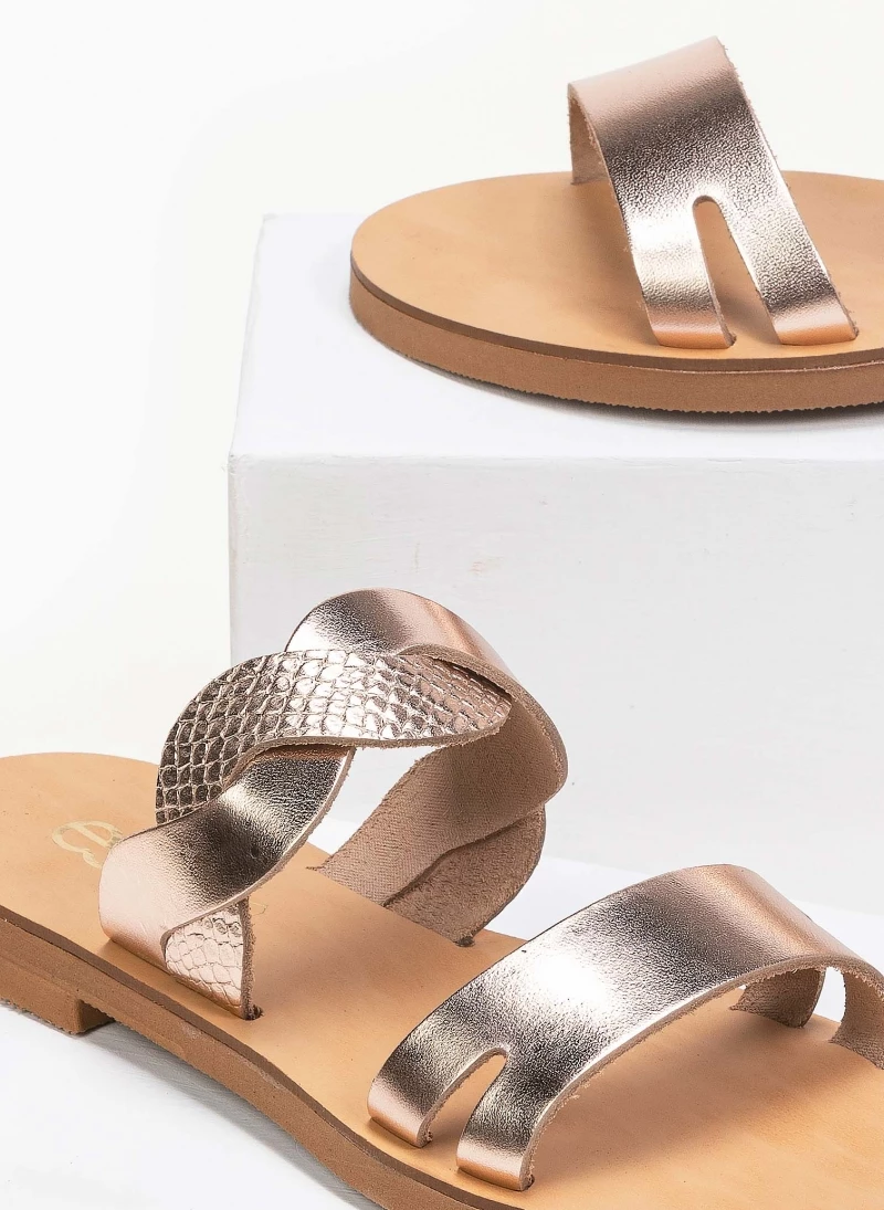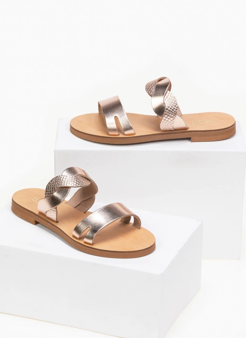 Estil δερμάτινα σανδάλια με περαστά λουράκια στο κουτεπιέ και pattern φίδι. Ελληνικής κατασκευής, χειροποίητα.