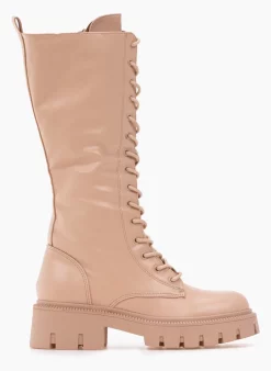 The Fashion Project Μπότες με κορδόνια και φερμουάρ – Μπεζ