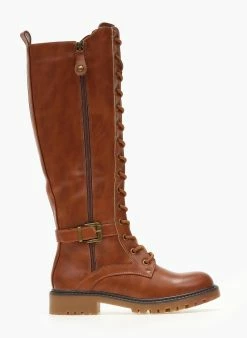 The Fashion Project Μπότες με κορδόνια και ζωνάκι – Ταμπά