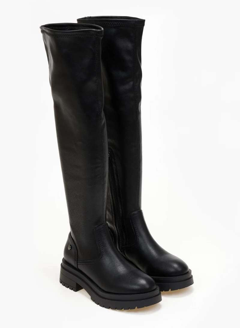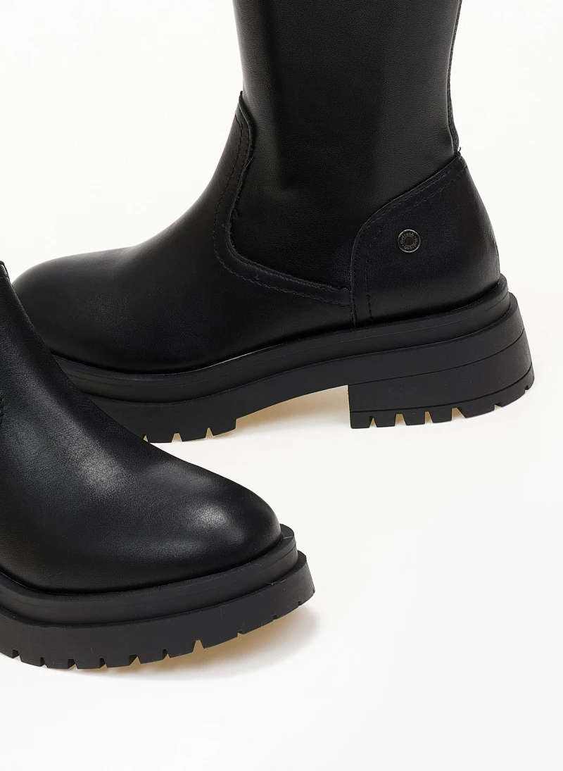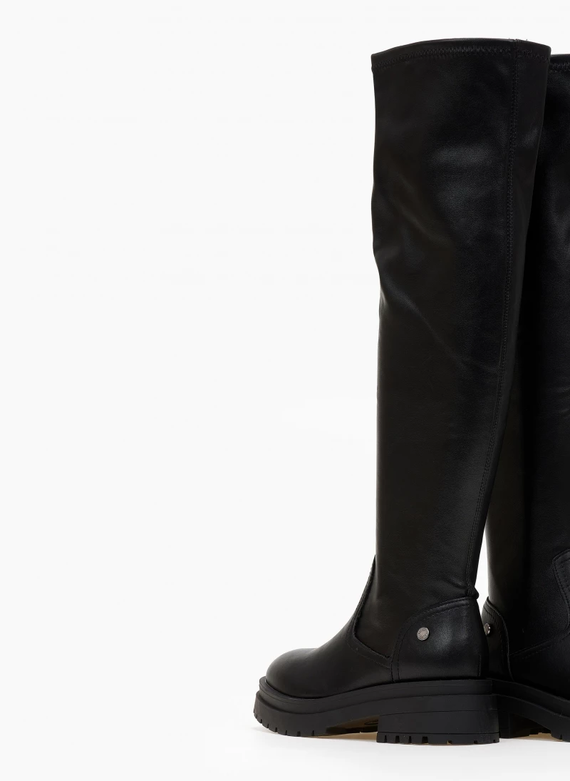 Μπότες casual πάνω από το γόνατο Refresh. Εφαρμοστή γραμμή στη γάμπα. Στρογγυλή γραμμή. Ψηλή τρακτερωτή σόλα. Peta-Vegan approved.