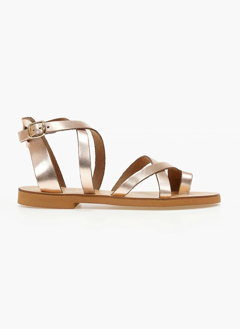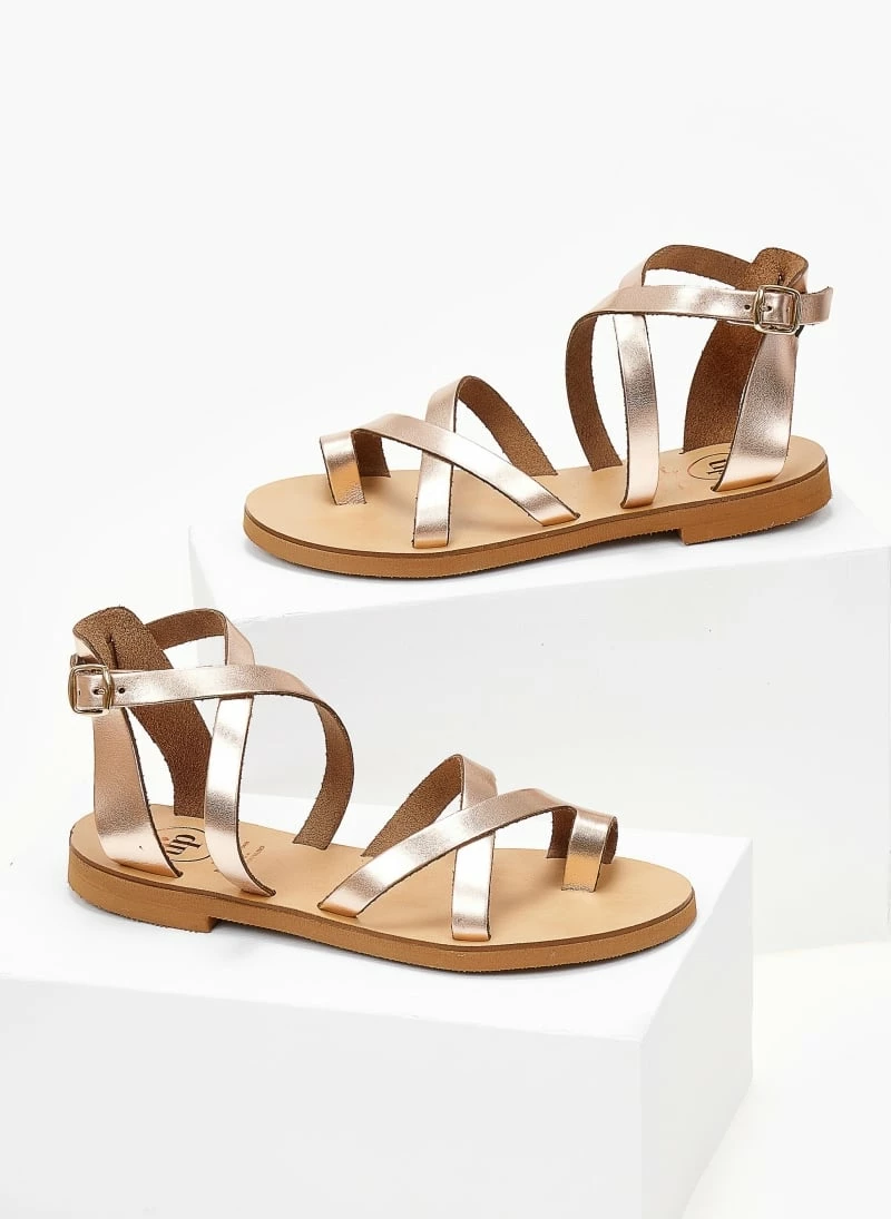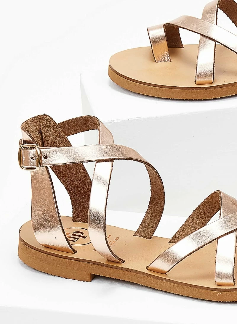 TFP ίσια δερμάτινα πέδιλα με χιαστί δέσιμο στο κουτεπιέ. Ελληνικής κατασκευής, χειροποίητα.