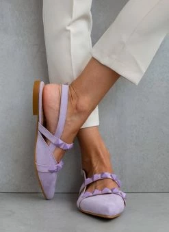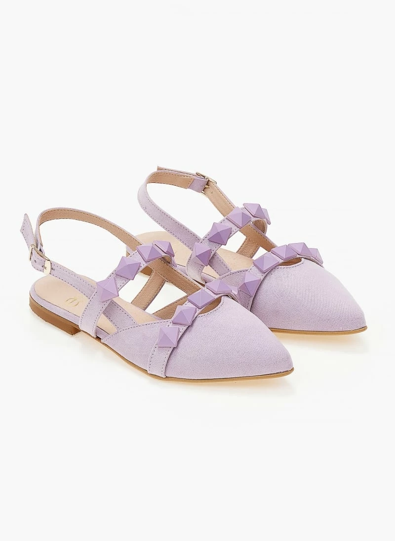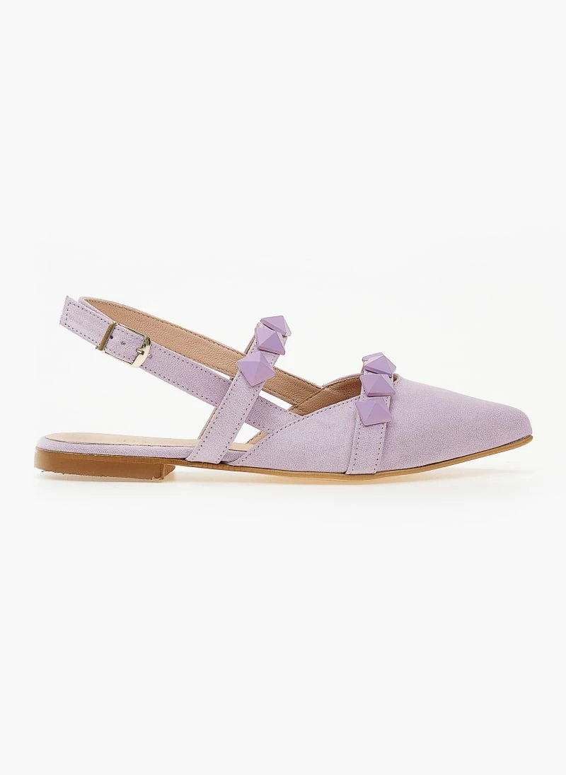 Estil μπαλαρίνες suede μυτερές. Δένουν με λουράκι στο πλά. Έχουν τρουκς ίδιο χρώμα. Δερμάτινος πάτος. Ελληνικής κατασκευής.