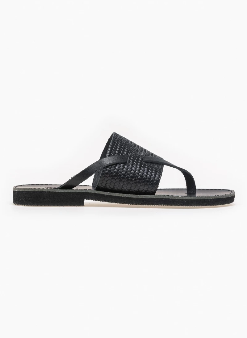 Estil δερμάτινα σανδάλια με φαρδιά φάσα και pattern ψάθα. Ελληνικής κατασκευής, χειροποίητα.