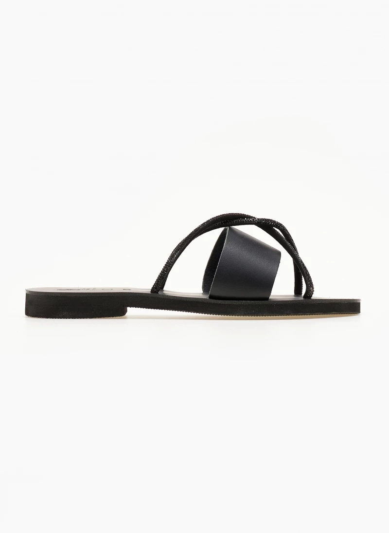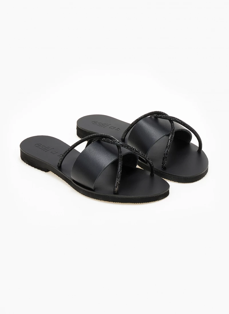 Σανδάλια δερμάτινα ESTIL με φάσα. Έχουν χιαστί strass λουράκια. Γνήσιο δέρμα,ελληνικής κατασκευής.
