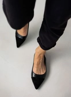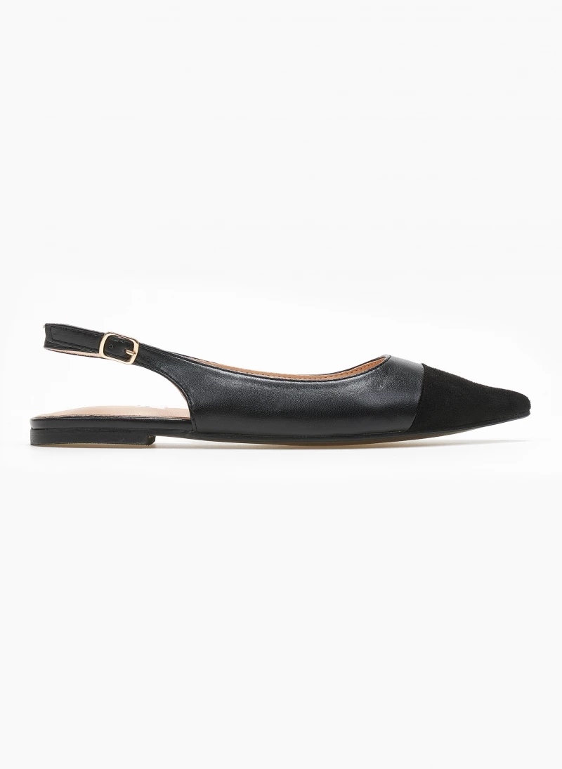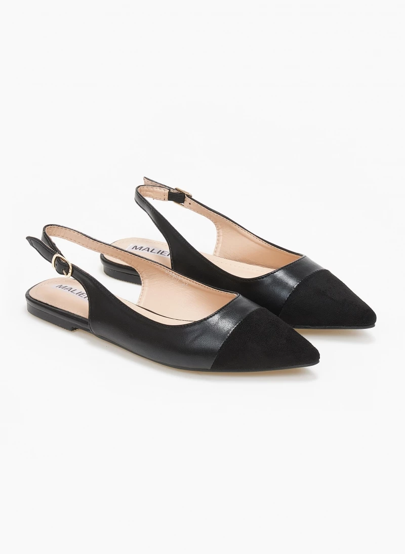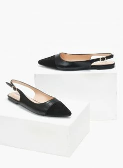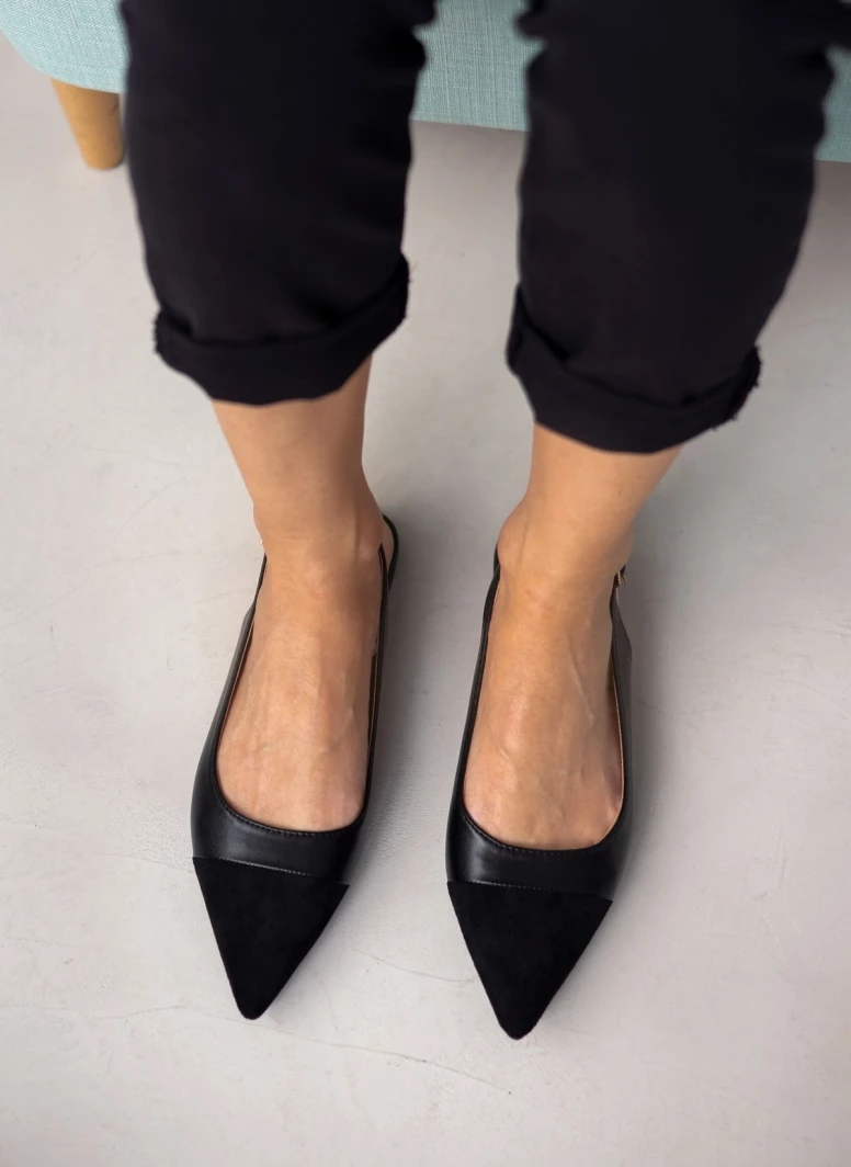 Μυτερές φλατ μπαλαρίνες. Έχουν λουράκι στο ύψος του αστραγάλου. Mat υλικό.