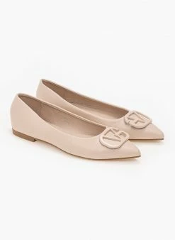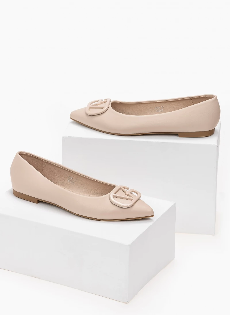 Μπαλαρίνες μυτερές χωρίς τακούνι.Έχουν ματ μεταλλικό διακοσμητικό.Η σόλα είναι μαλακή από λάστιχο.