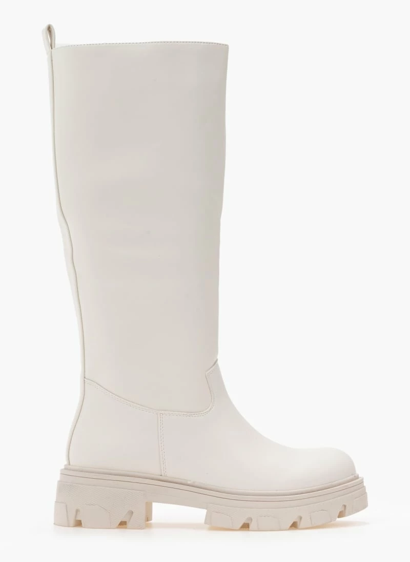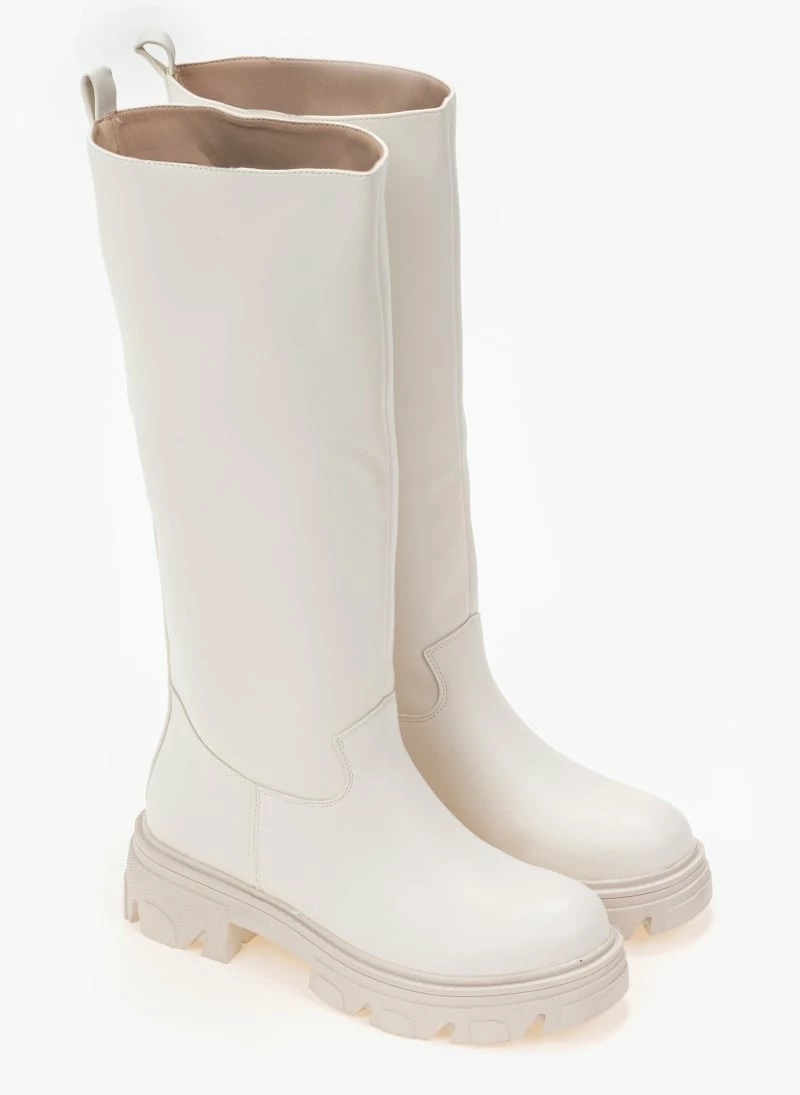 Φλατ μπότες με chunky σόλα. Δεν έχουν φερμουάρ. Στρογγυλή γραμμή.