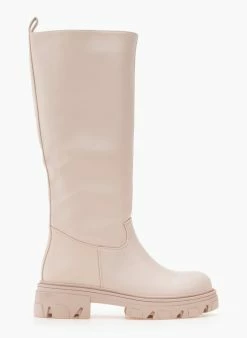Φλατ μπότες με chunky σόλα. Δεν έχουν φερμουάρ. Στρογγυλή γραμμή.