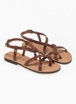 The Fashion Project Σανδάλια δερμάτινα με κοτσιδάκι Estil – Ταμπά
