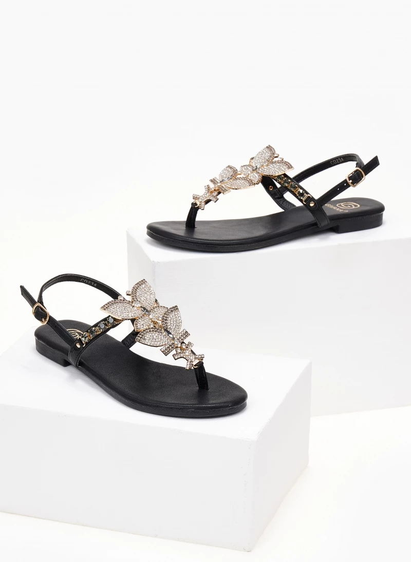 Σανδάλια με strass πεταλούδες. Δένουν με λουράκι στο πλάι. Σόλα από λάστιχο.