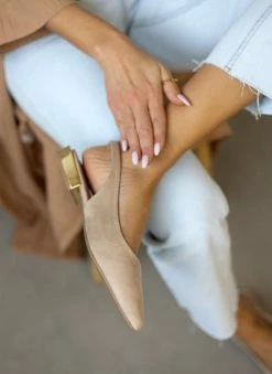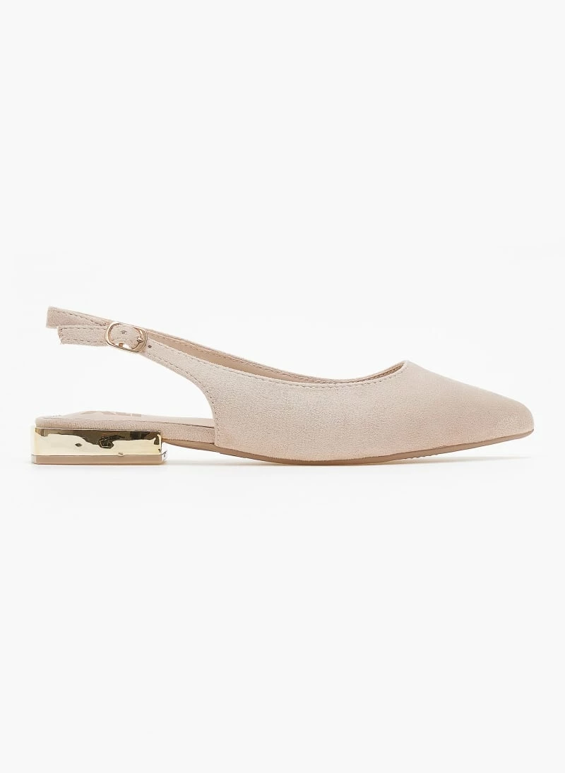 Μπαλαρίνες Xti suede μυτερές. Δένουν με λουράκι στο πλάι. Έχουν τετράγωνο μεταλλικό τακούνι. Peta vegan approved.