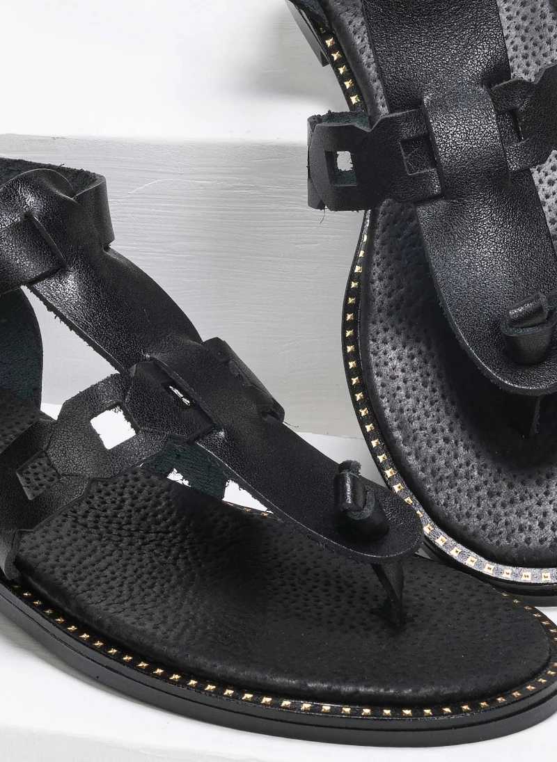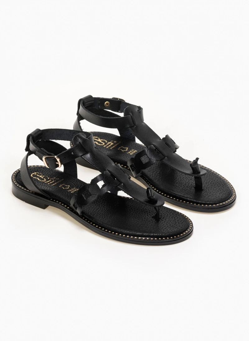 Estil δερμάτινα flat πέδιλα με δέσιμο στο πλάι. Ο πάτος είναι μαλακός από δέρμα. Ελληνικής κατασκευής.