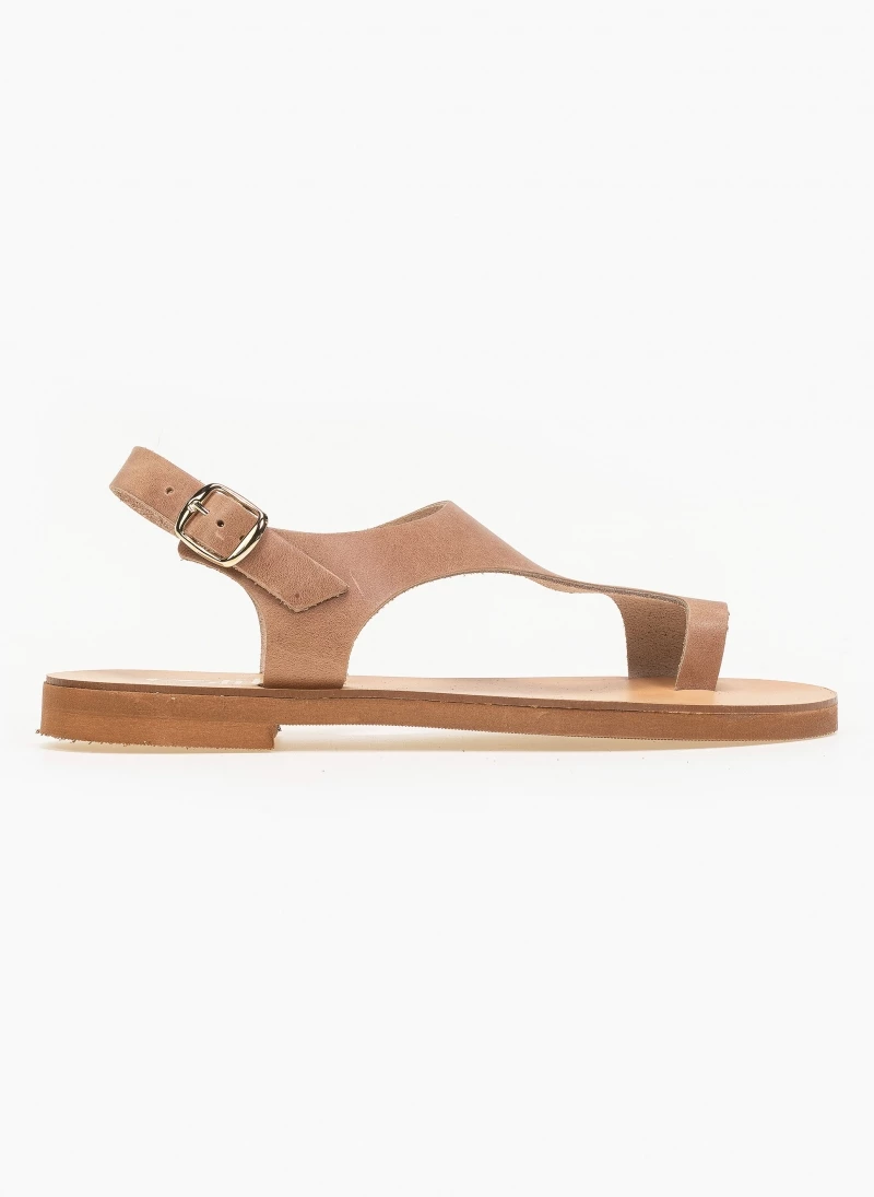 Estil δερμάτινα ίσια πέδιλα. Δένουν στο πλάι. Ελληνικής κατασκευής, χειροποίητα.