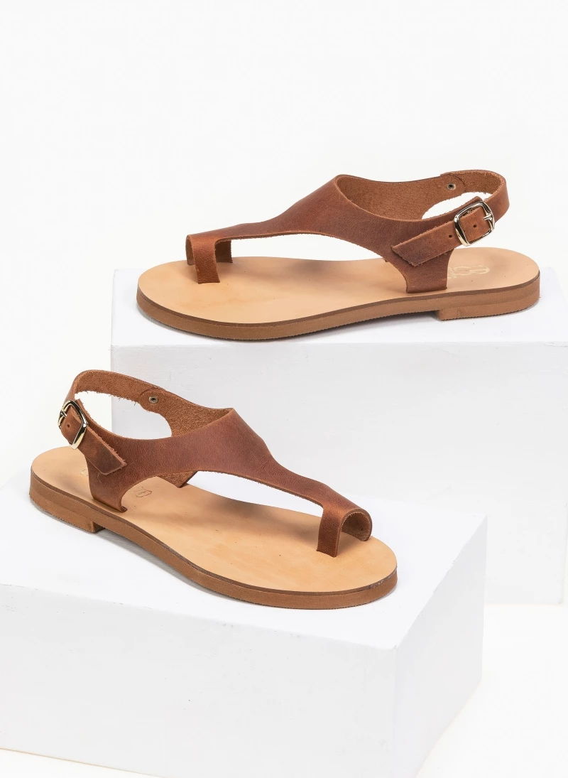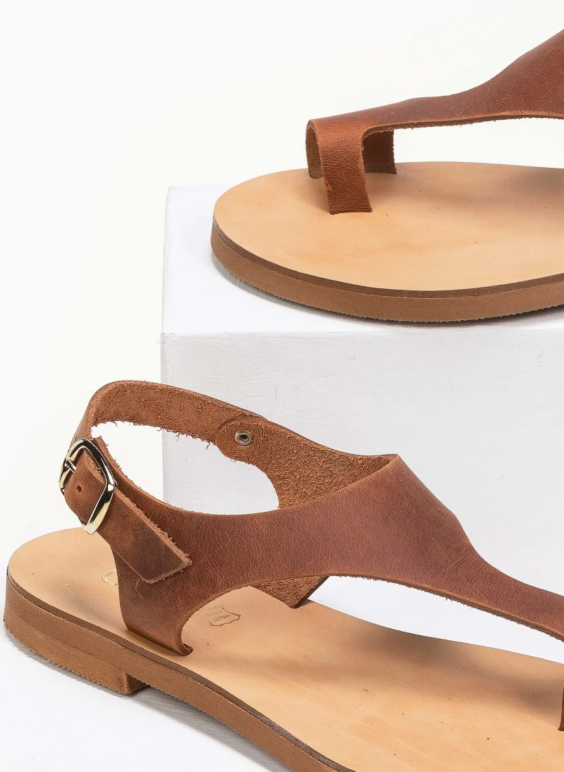 Estil δερμάτινα ίσια πέδιλα. Δένουν στο πλάι. Ελληνικής κατασκευής, χειροποίητα.