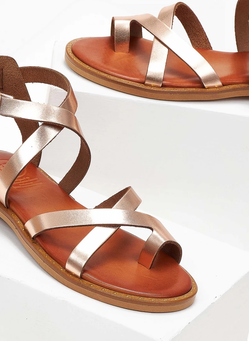 Tfp δερμάτινα πέδιλα με λεπτά λουράκια. Ο πάτος είναι δερμάτινος με ενίσχυση. Ελληνικής κατασκευής, χειροποίητα.