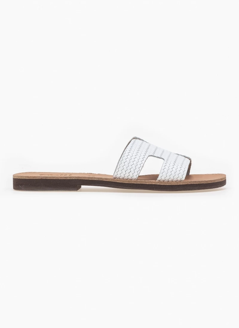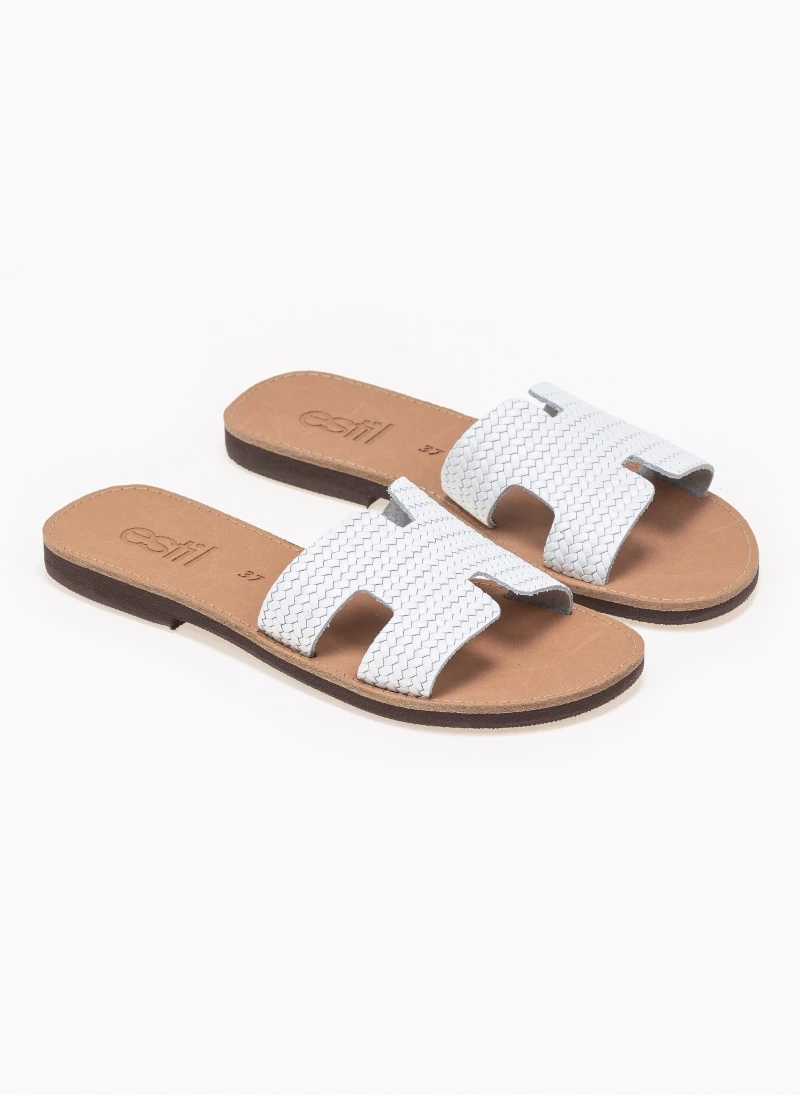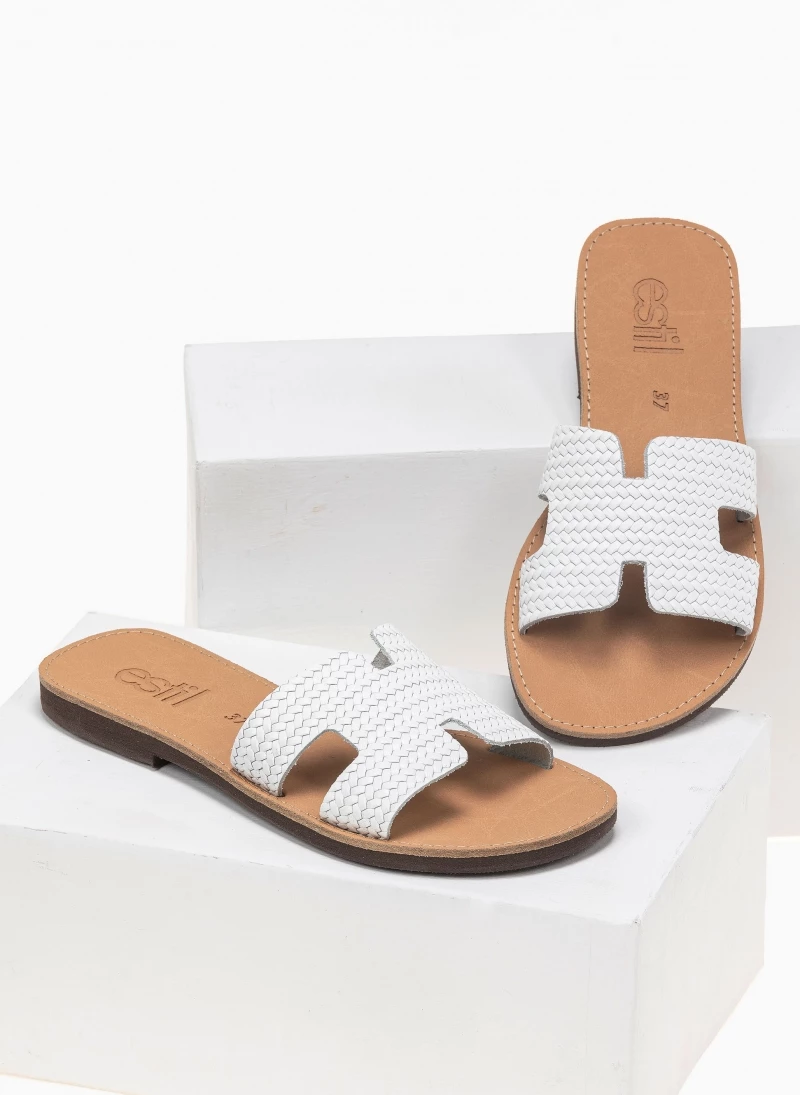 Estil δερμάτινα σανδάλια με φαρδιά φάσα και ανάγλυφο pattern. Eλληνικής κατασκευής, χειροποίητα.
