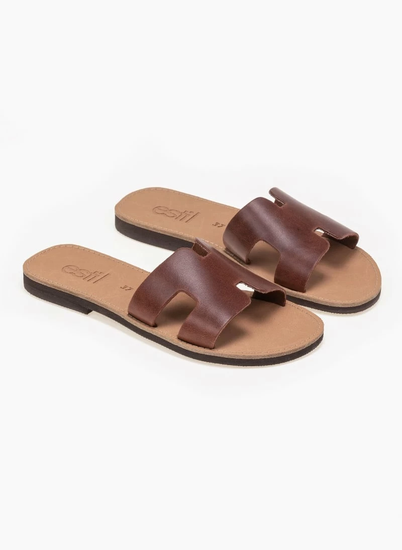 Estil δερμάτινα σανδάλια με φάσα και ανοίγματα στο πλάι. Ελληνικής κατασκευής, χειροποίητα.