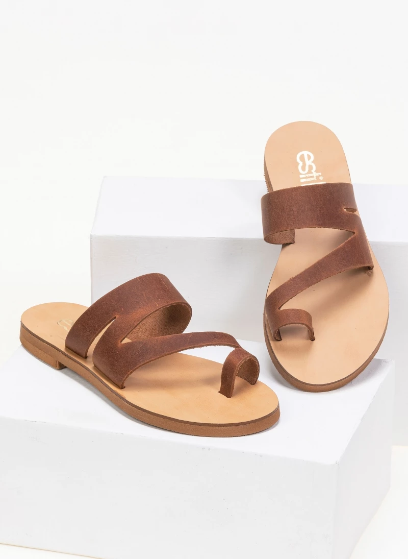 Estil δερμάτινα σανδάλια με άνοιγμα στο πλάι. Ελληνικής κατασκευής, χειροποίητα.
