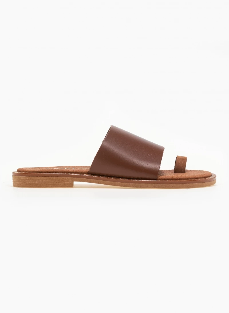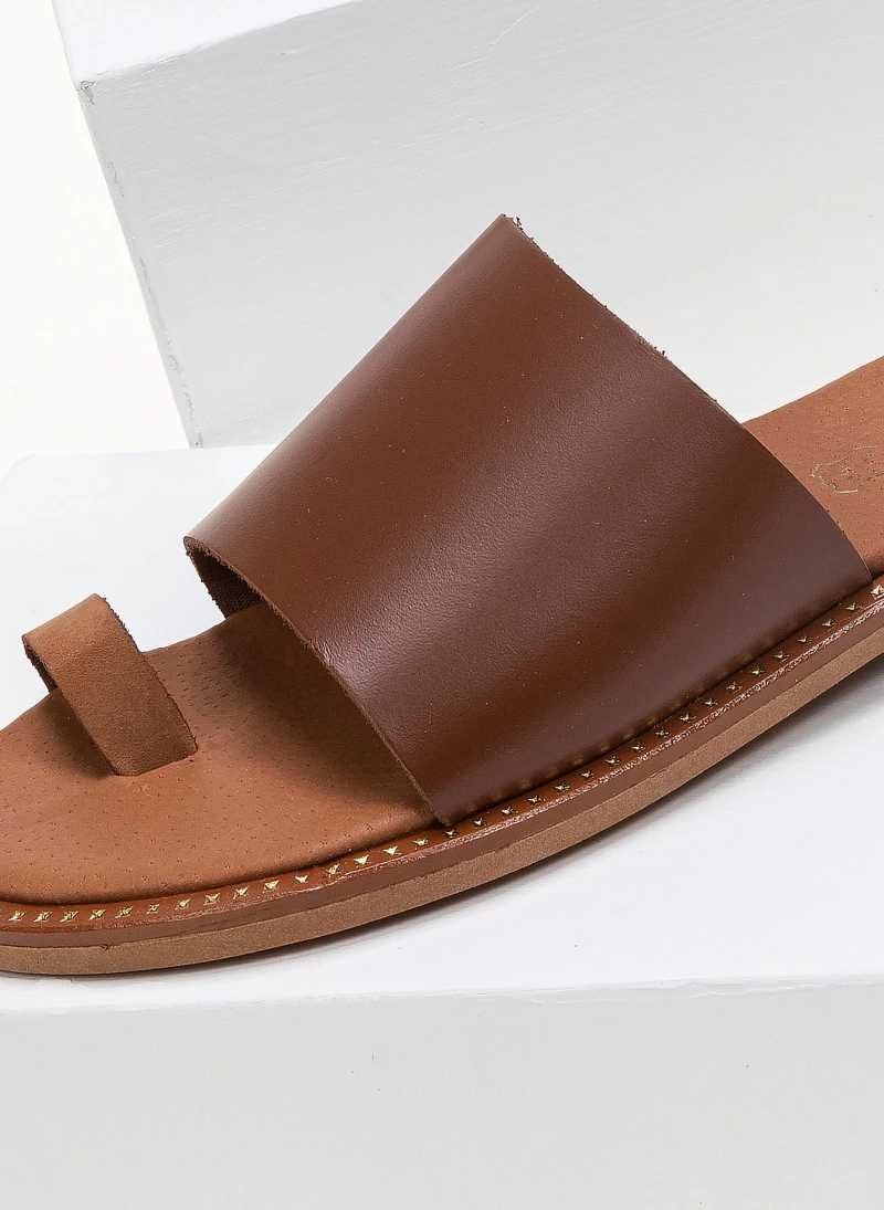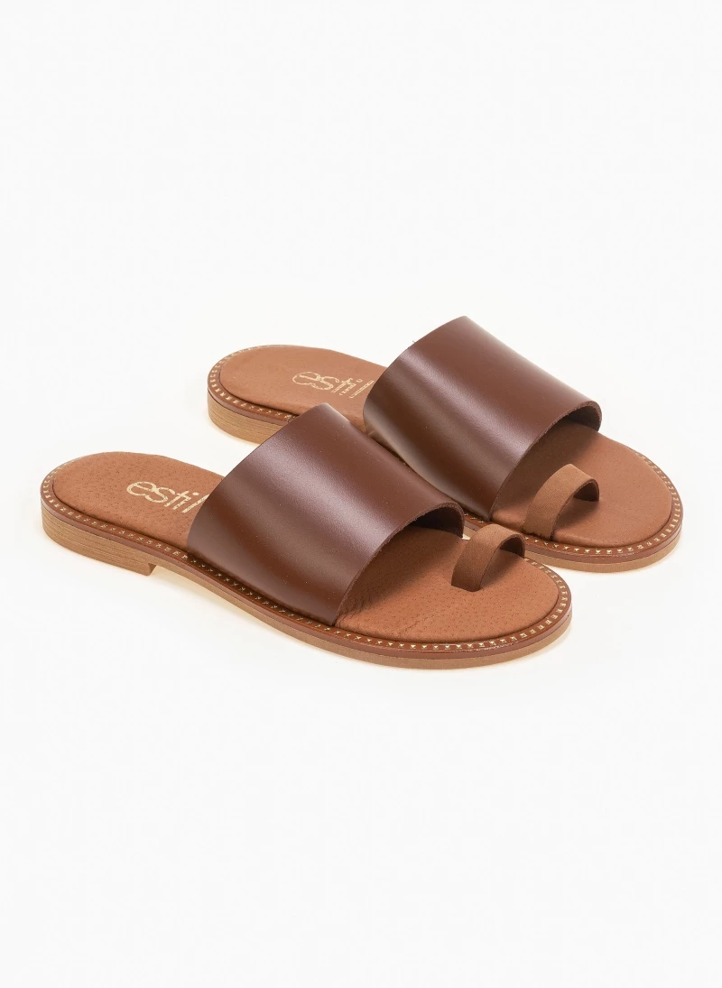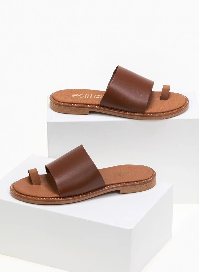 Estil δερμάτινα φλατ σανδάλια. Ο πάτος είναι δερμάτινος με ενίσχυση. Η σόλα είναι μαλακή. Ελληνικής κατασκευής.