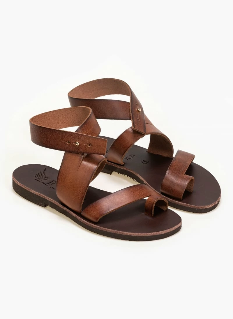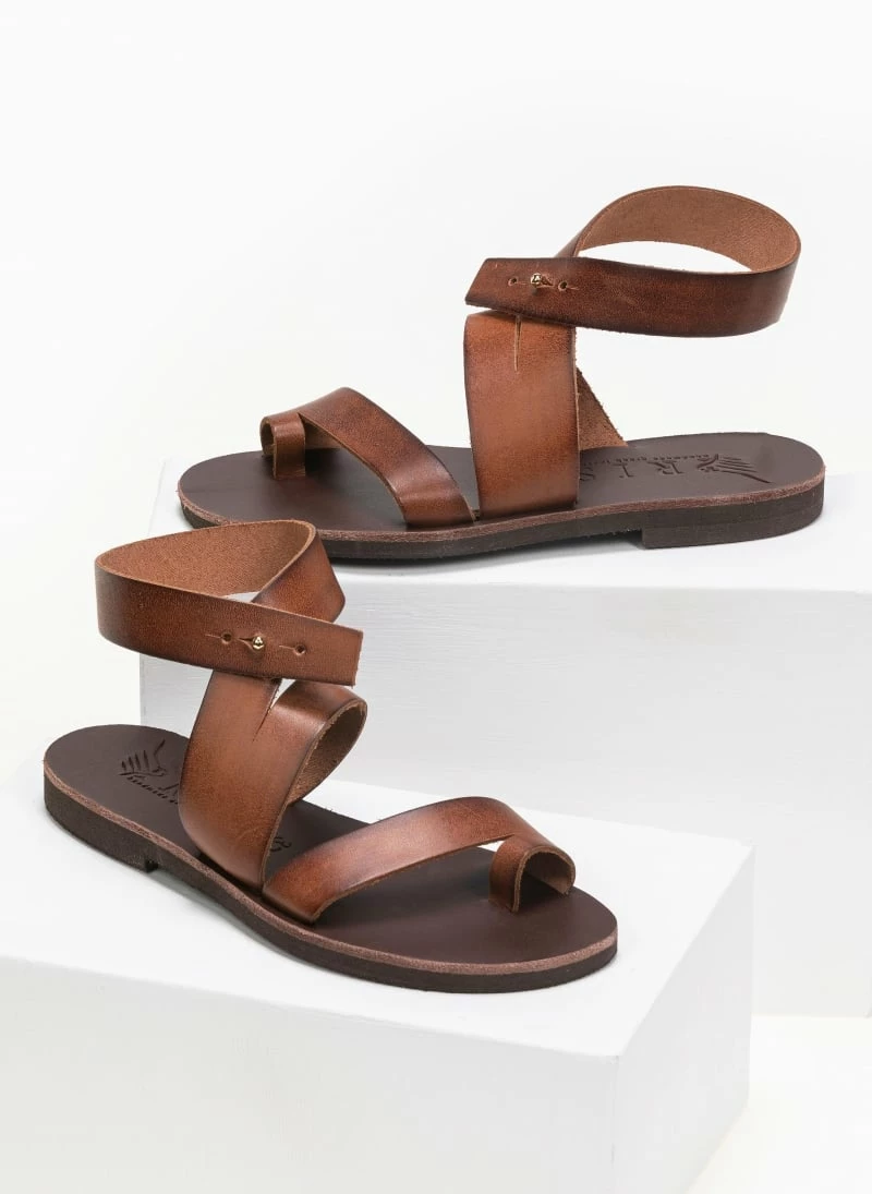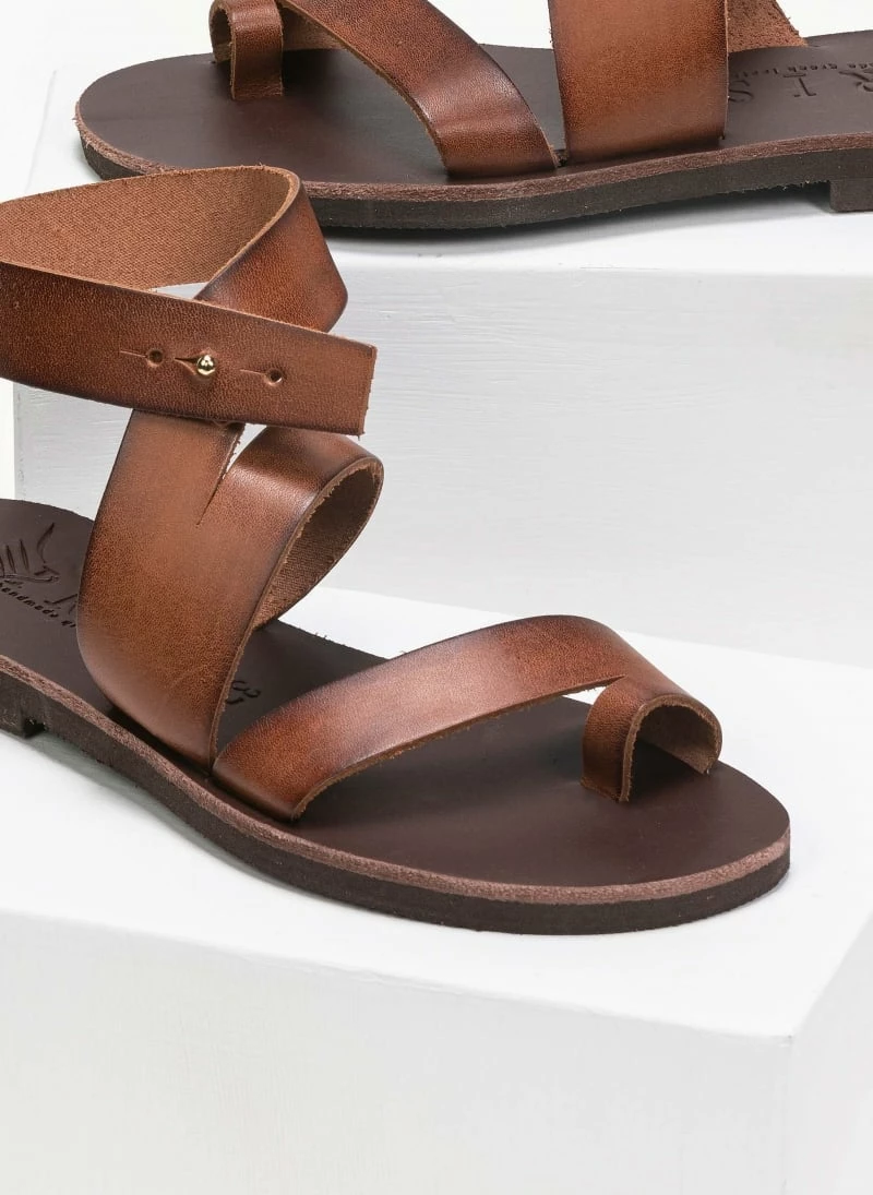 Δερμάτινα ίσια πέδιλα με ιδιαίτερο λοξό κούμπωμα. Ελληνικής κατασκευής, χειροποίητα.