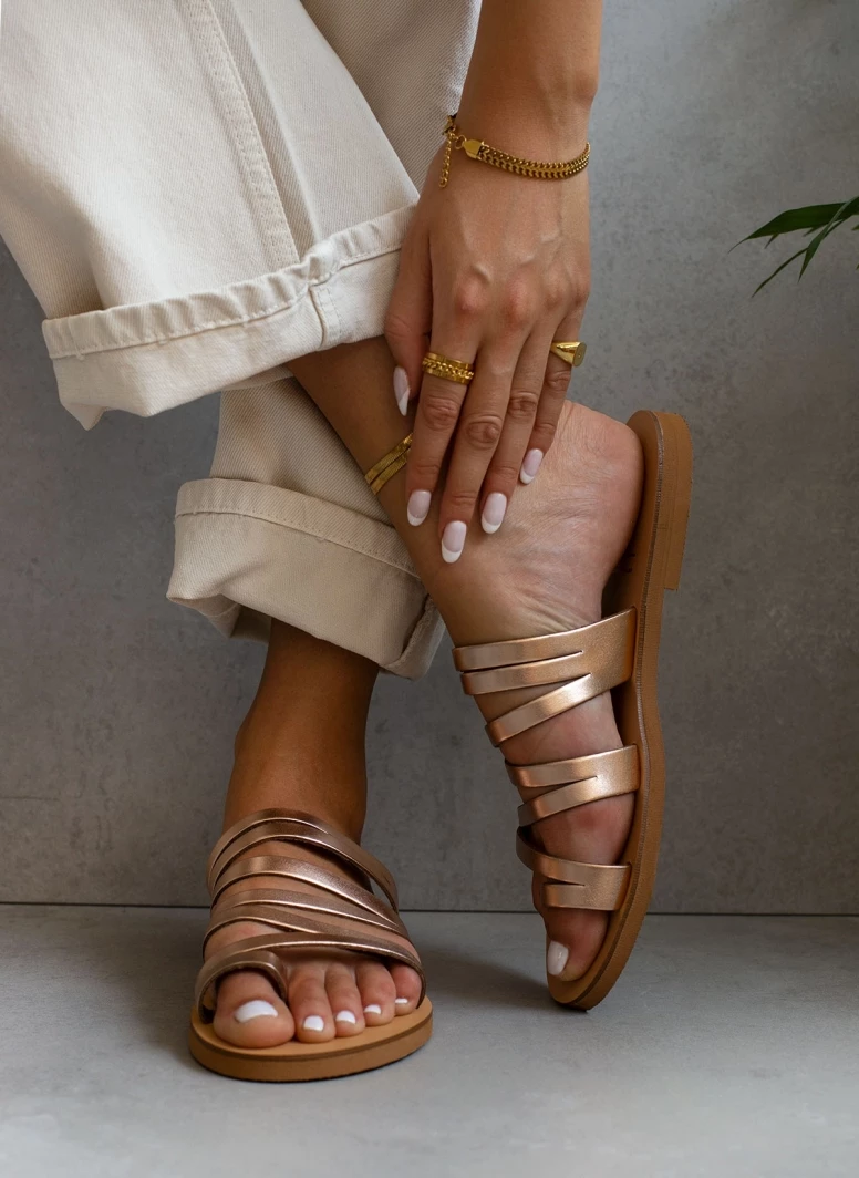Tfp δερμάτινα πέδιλα με λεπτά λουράκια. Ελληνικής κατασκευής, χειροποίητα.
