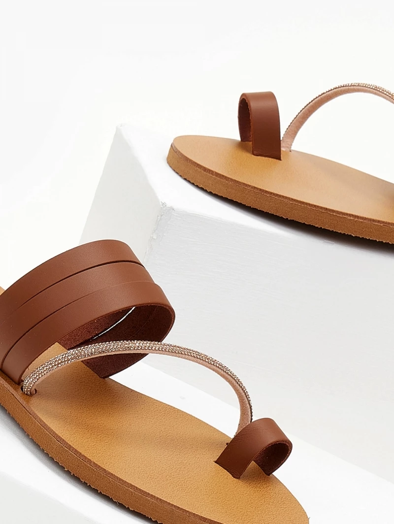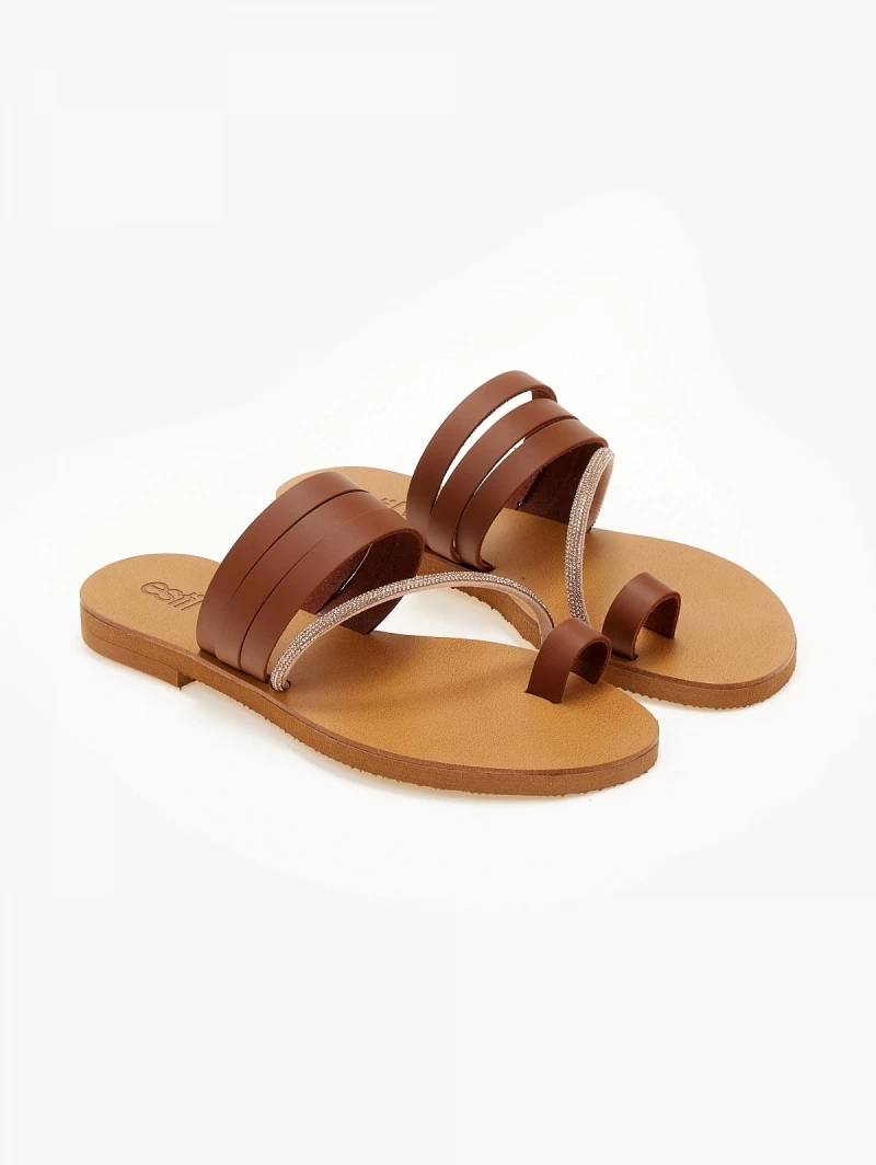 Σανδάλια δερμάτινα ESTIL. Έχουν λοξό strass λουράκι στο κουτεπιέ. Ελληνικής κατασκευής.