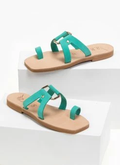 Δερμάτινα σανδάλια σε καρέ γραμμή. Έχουν δερμάτινα λουράκια με μεταλλική αγκράφα. Ελληνικής κατασκευής, χειροποίητα.