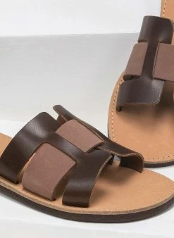 Estil δερμάτινα σανδάλια με περαστή φάσα και διχρωμία. Ελληνικής κατασκευής, χειροποίητα.