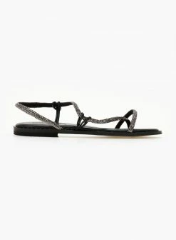 Σανδάλια δερμάτινα με strass λουράκια. Έχουν λεπτομέρεια μεταλλικό χρώμα περιμετρικά της σόλας. Μαλακός δερμάτινος πάτος με ενίσχυση. Ελληνικής κατασκευής.