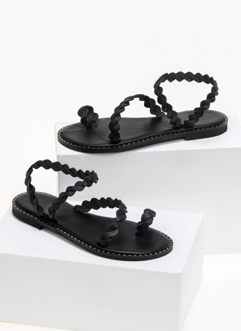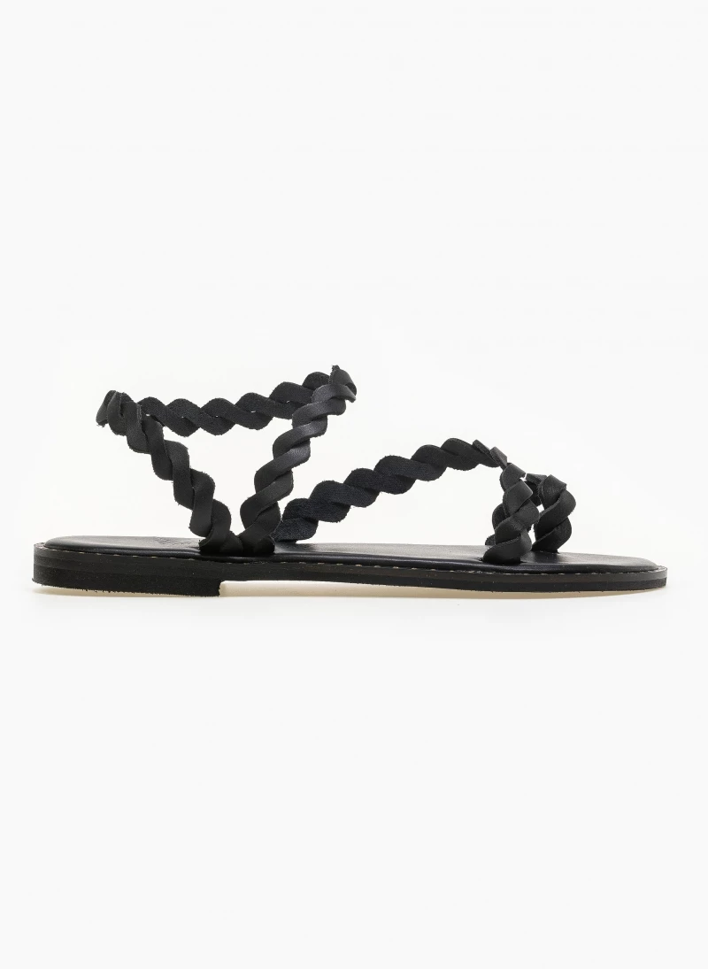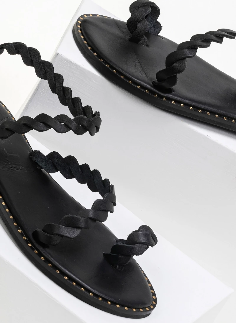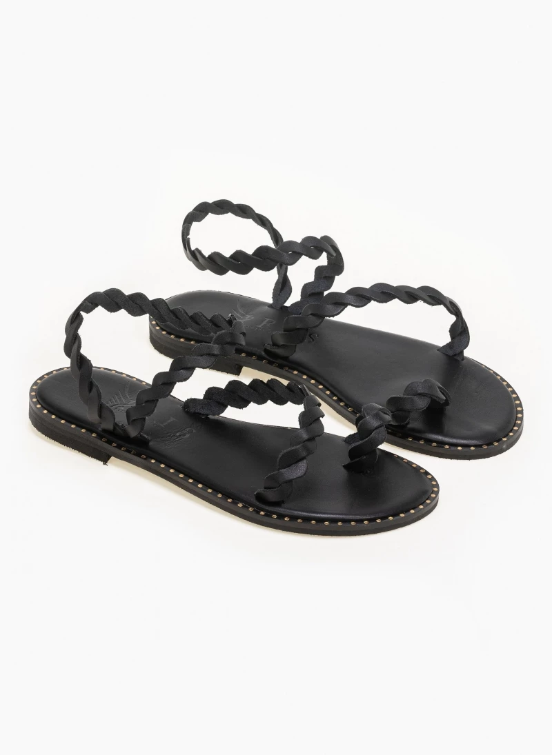 Δερμάτινα ίσια πέδιλα με περαστό λουράκι στον αστράγαλο. Ο πάτος είναι δερμάτινος με ενίσχυση. Ελληνικής κατασκευής, χειροποίητα.