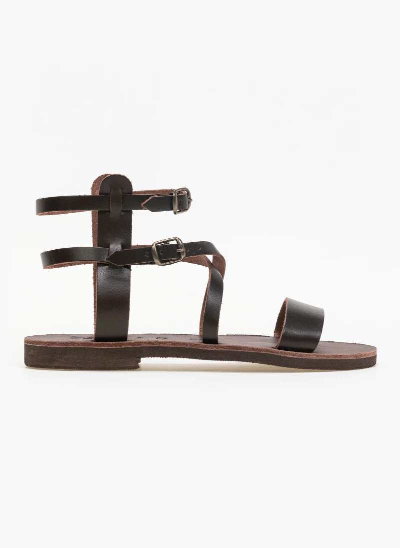 Δερμάτινα gladiator σανδάλια με διπλό δέσιμο στο ύψος του αστραγάλου. Ελληνικής κατασκευής, χειροποίητα.