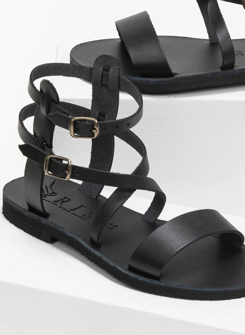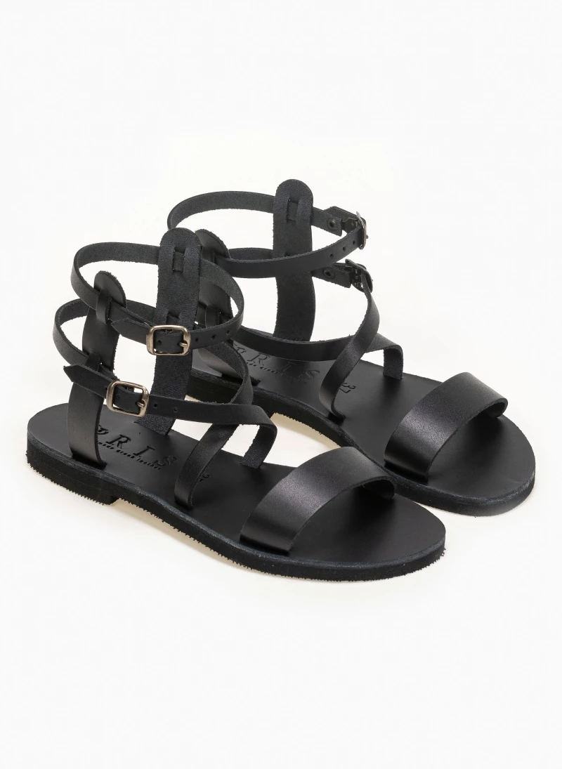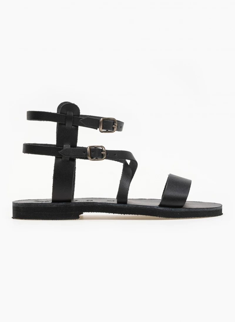 Δερμάτινα gladiator σανδάλια με διπλό δέσιμο στο ύψος του αστραγάλου. Ελληνικής κατασκευής, χειροποίητα.