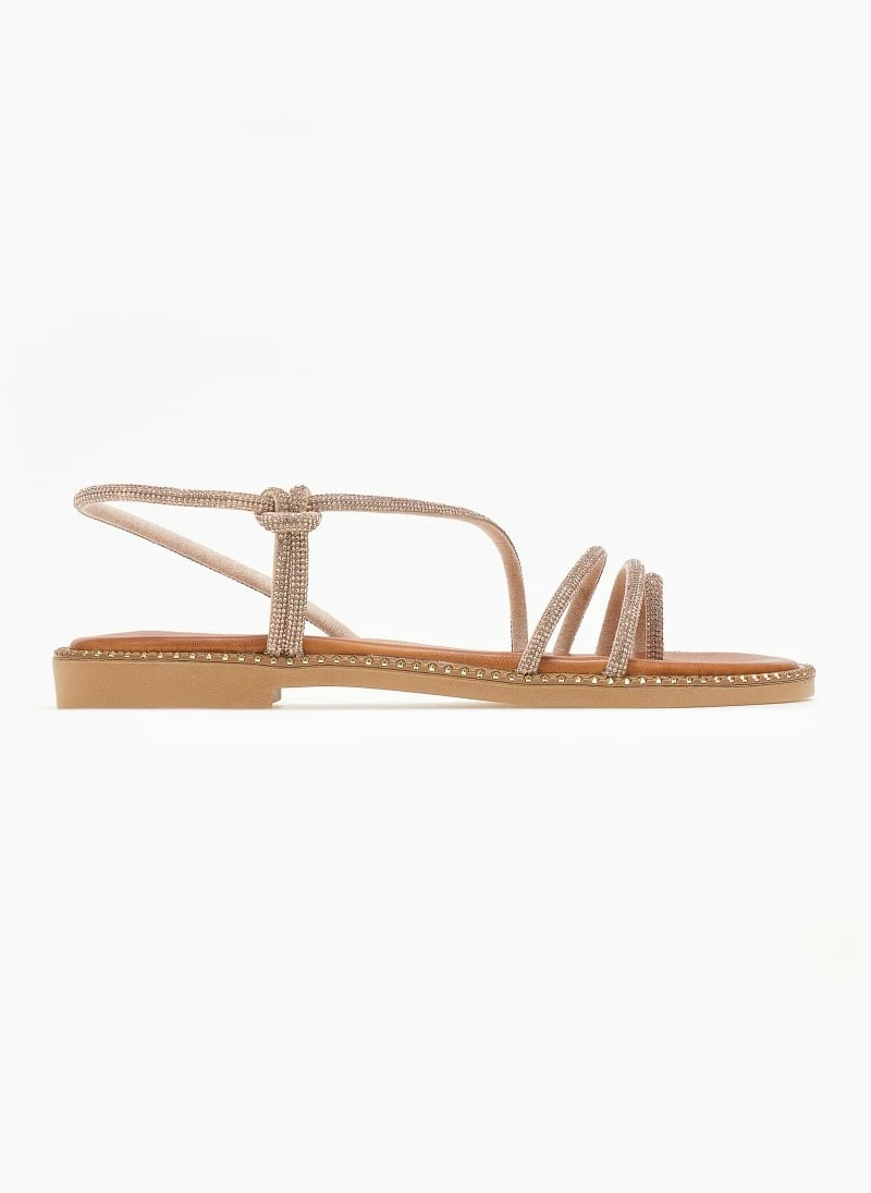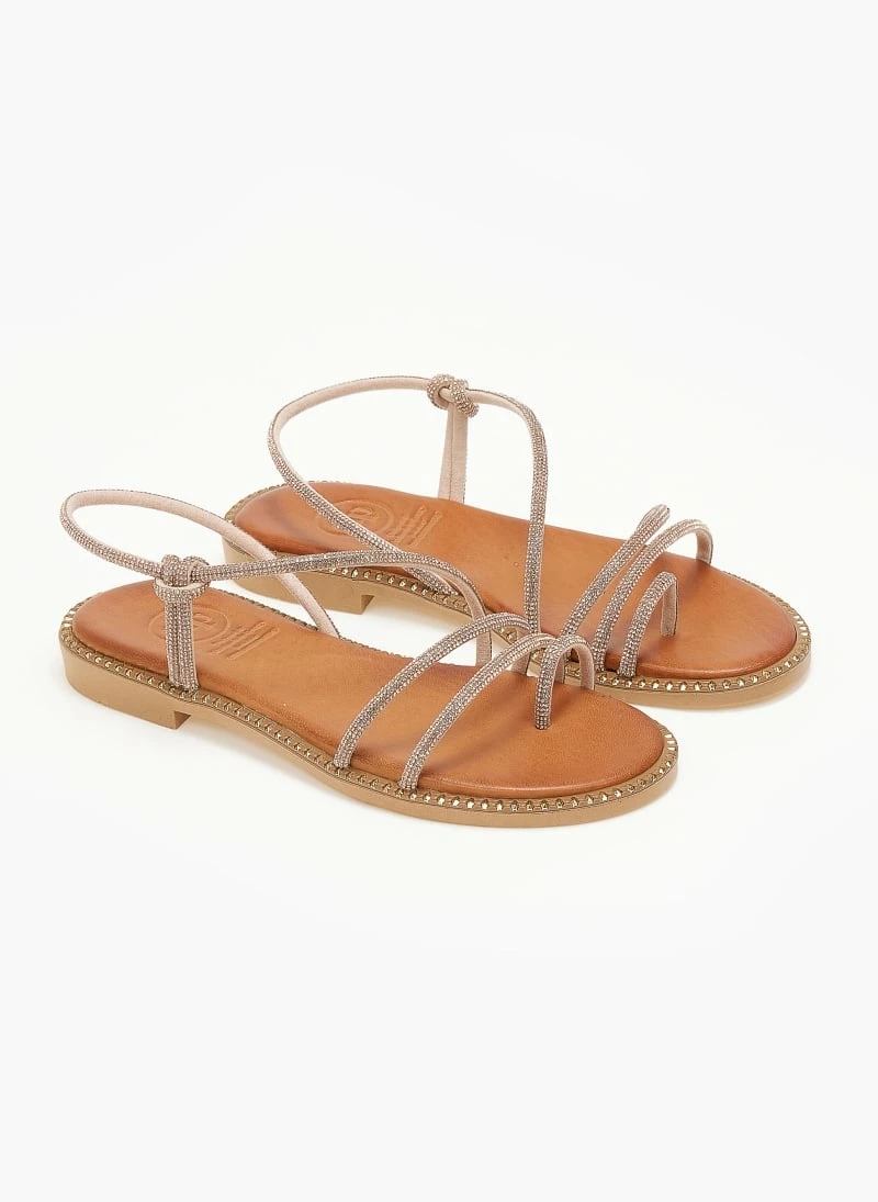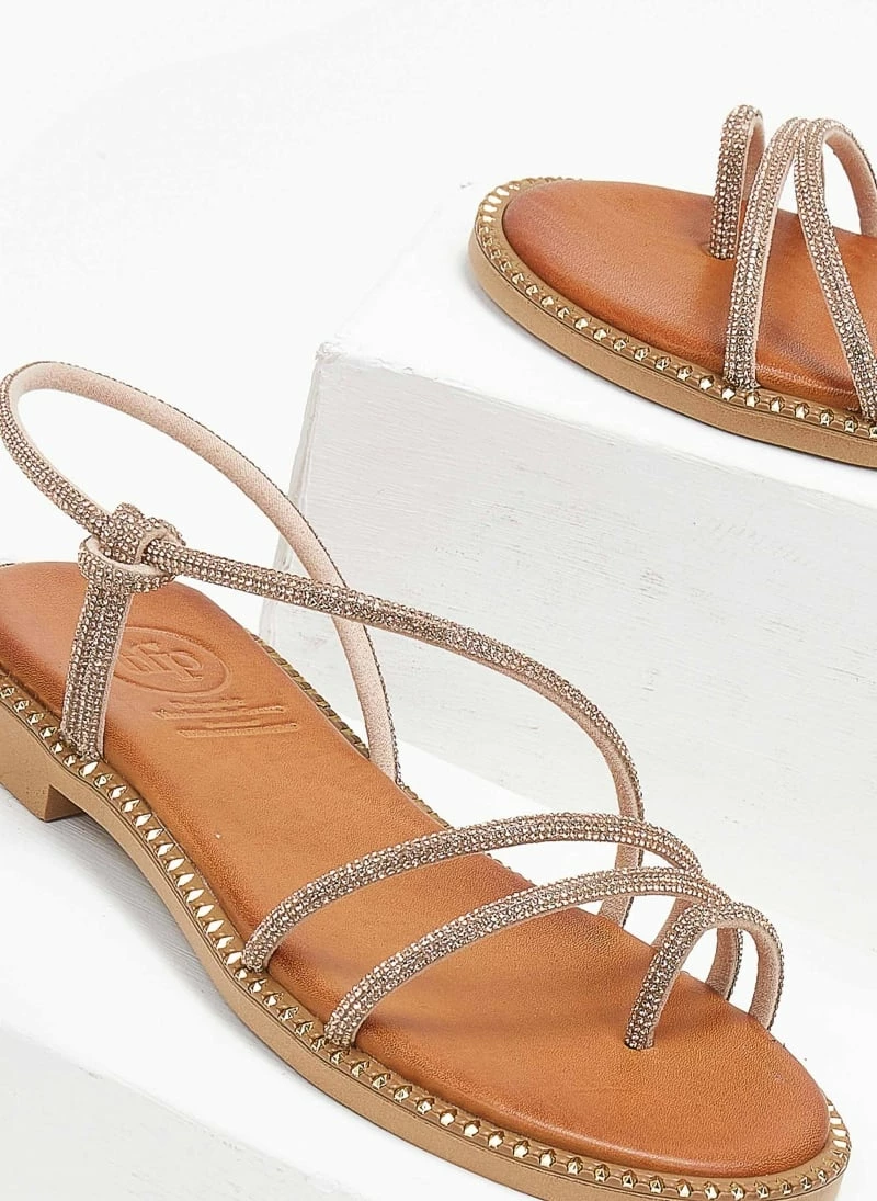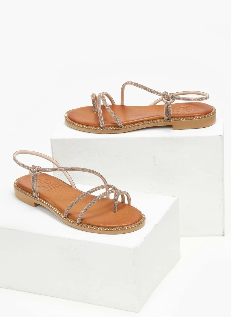 Tfp δερμάτινα σανδάλια με στρας λουράκια. Έχουν μαλακό δερμάτινο πάτο με ενίσχυση. Περαστό strass λουράκι στο ύψος του αστραγάλου. Ελληνικής κατασκευής.