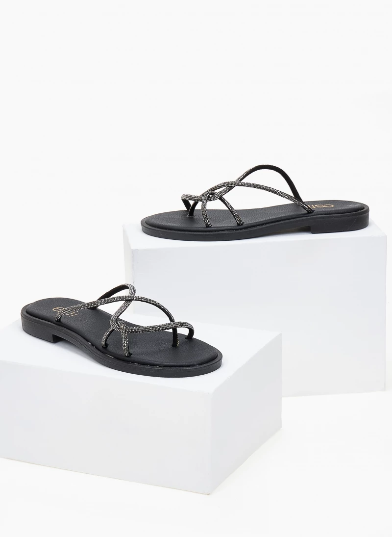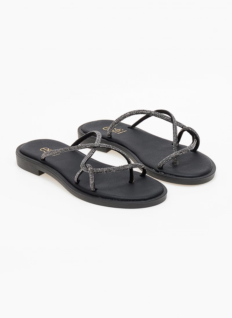 Δερμάτινα Estil σανδάλια με λεπτά strass λουράκια. Ο πάτος είναι μαλακός με ενίσχυση. Ελληνικής κατασκευής, χειροποίητα.