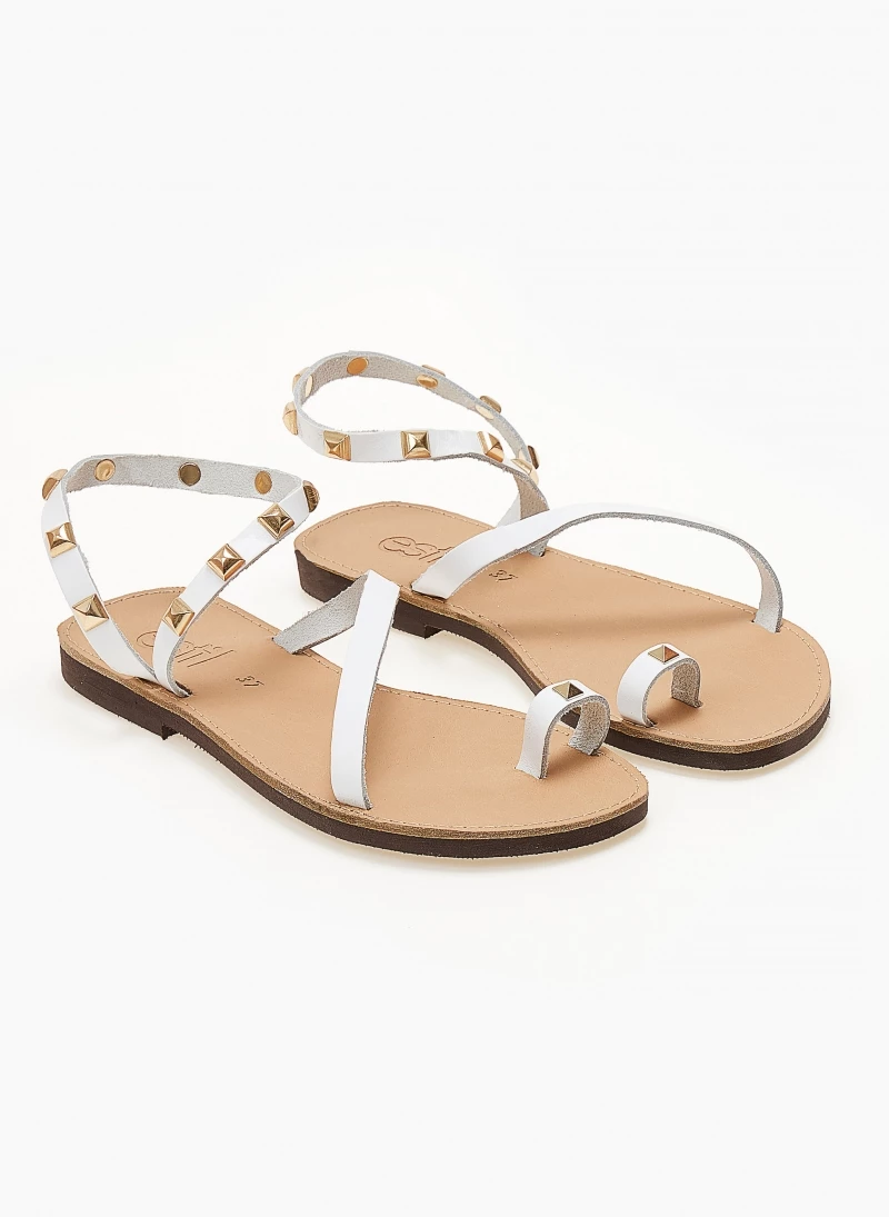 Estil δερμάτινα ίσια πέδιλα με περαστό λουράκι στον αστράγαλο. Ο πάτος είναι δερμάτινος με ενίσχυση. Ελληνικής κατασκευής, χειροποίητα.