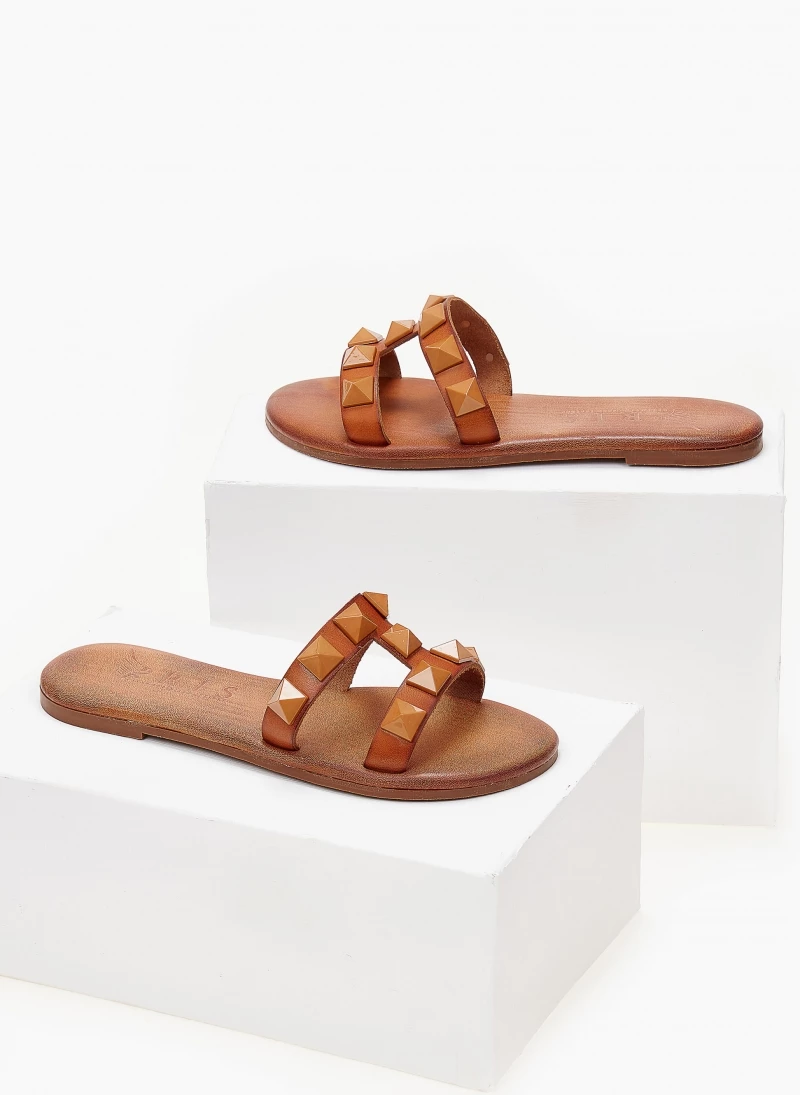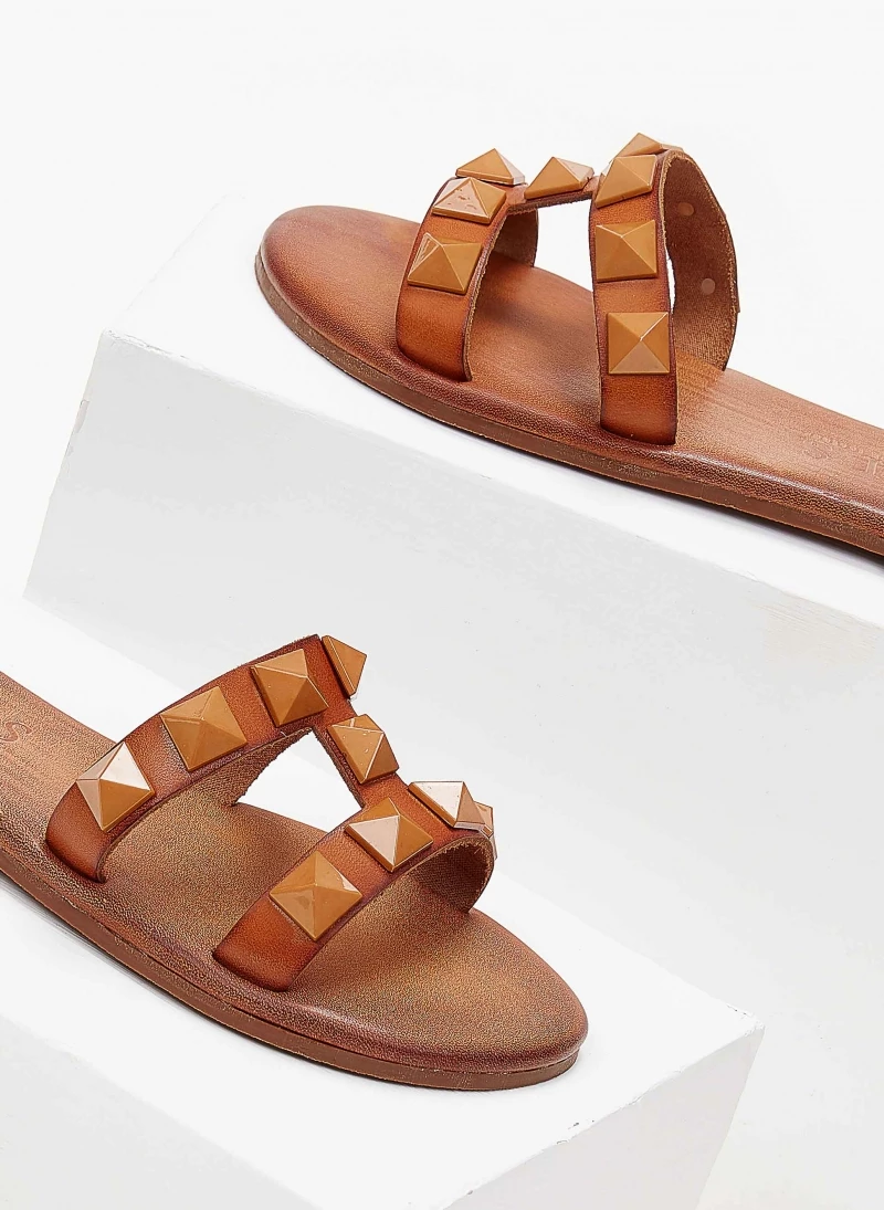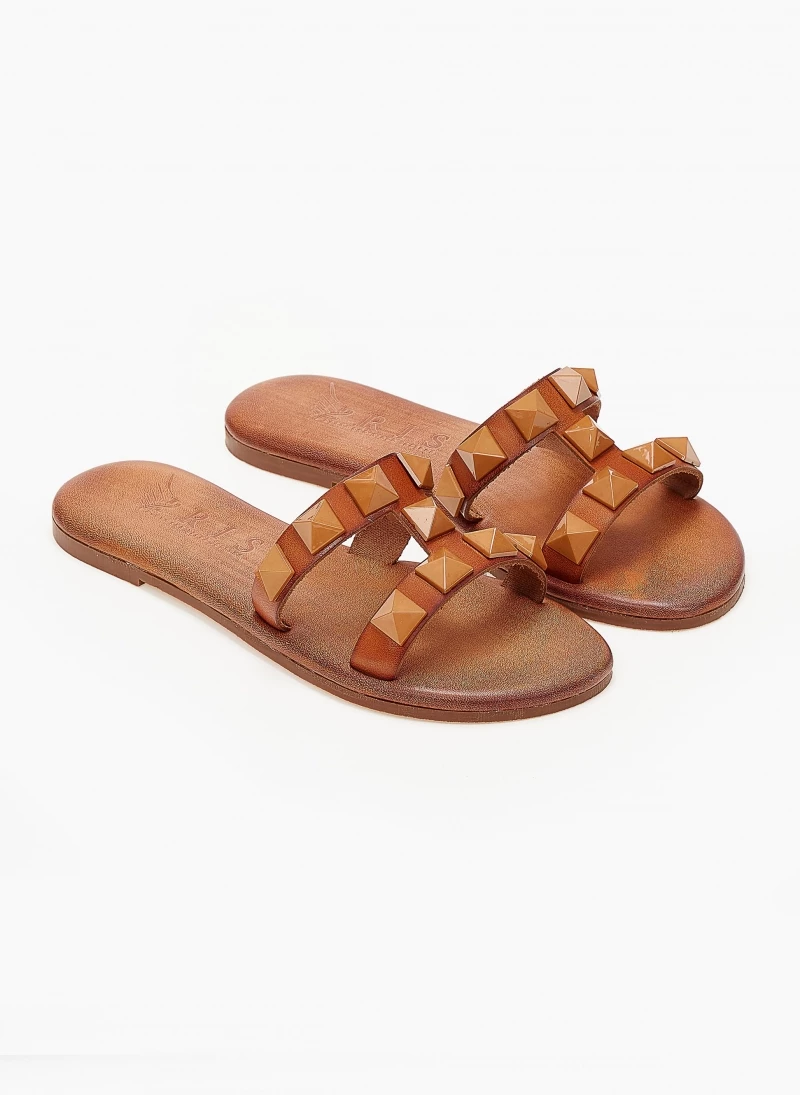 Δερμάτινα φλατ σανδάλια IRIS με μεγάλα τρουκς. Χειροποίητα,ελληνικής κατασκευής.