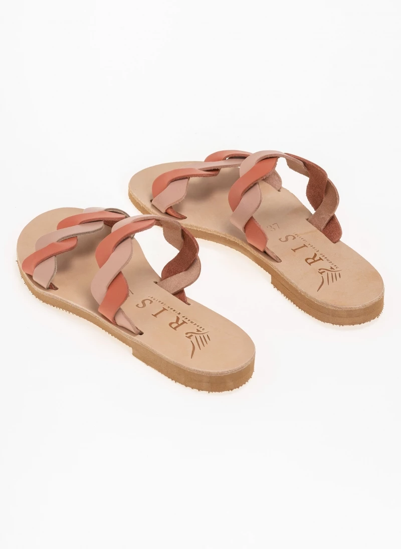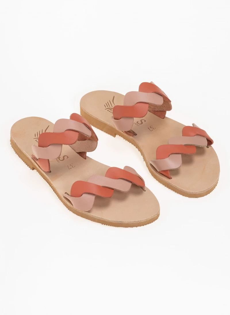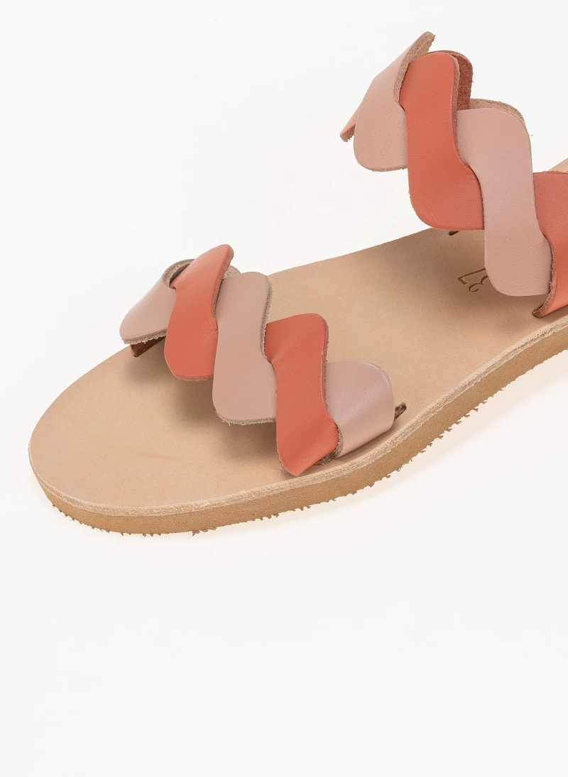 Δίχρωμα σανδάλια από γνήσιο δέρμα με πλεγμένες wavy φάσες. Ελληνικής κατασκευής,χειροποίητα. Δερμάτινος πάτος.
