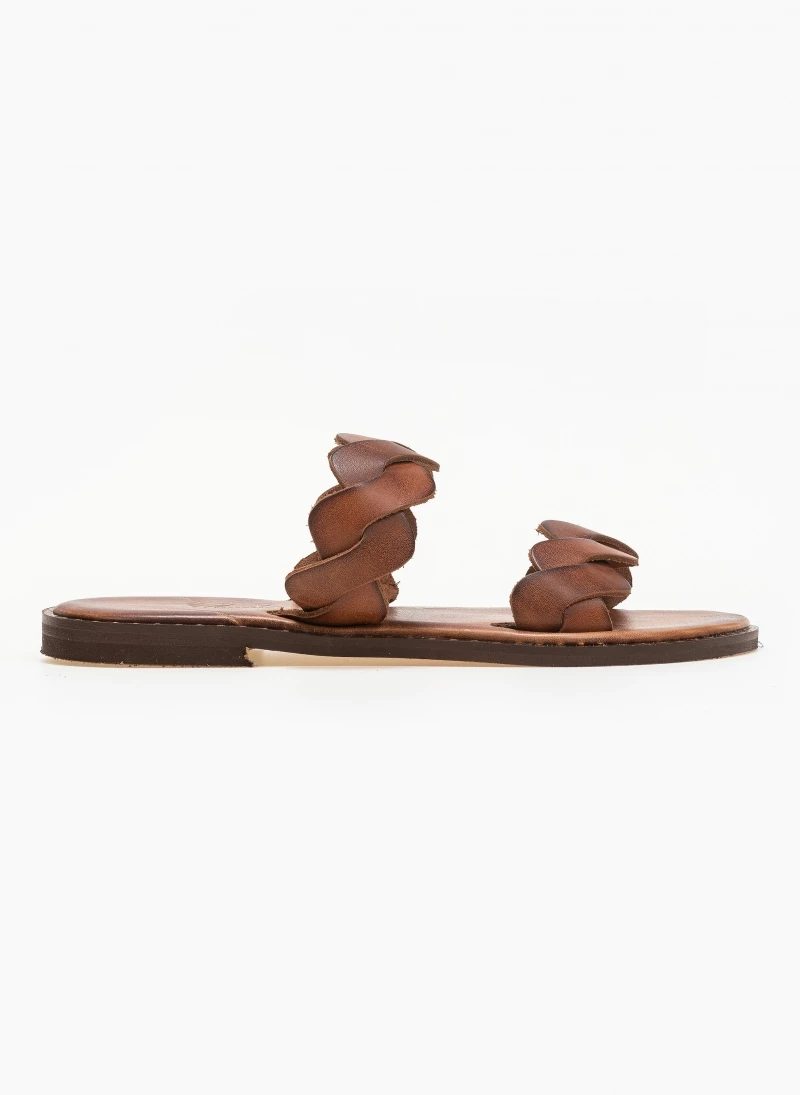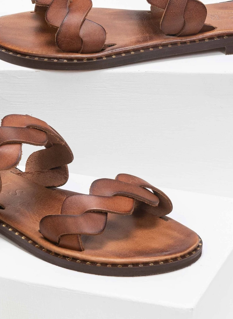 Δερμάτινα σανδάλια με wavy πλεγμένες φάσες. Ο πάτος είναι δερμάτινος με ενίσχυση. Έχουν λεπτομέρεια μεταλλικό χρώμα περιμετρικά της σόλας. Ελληνικής κατασκευής, χειροποίητα.