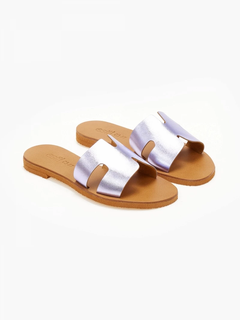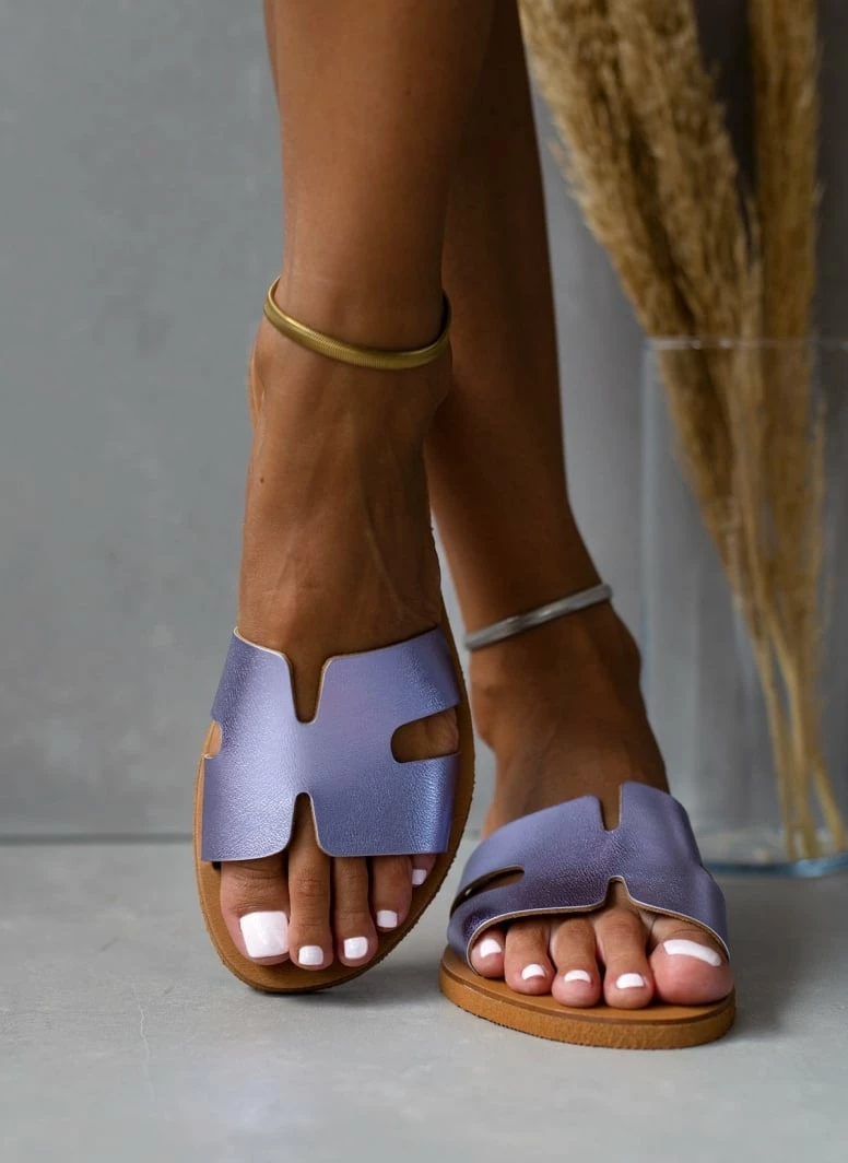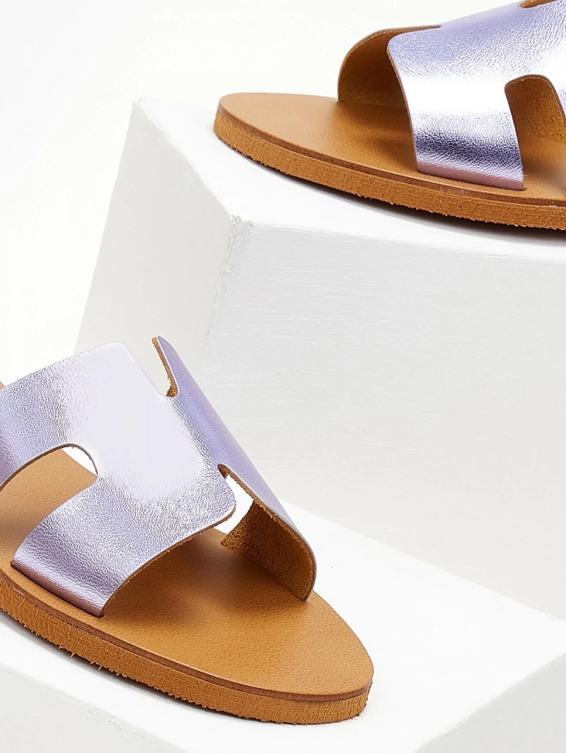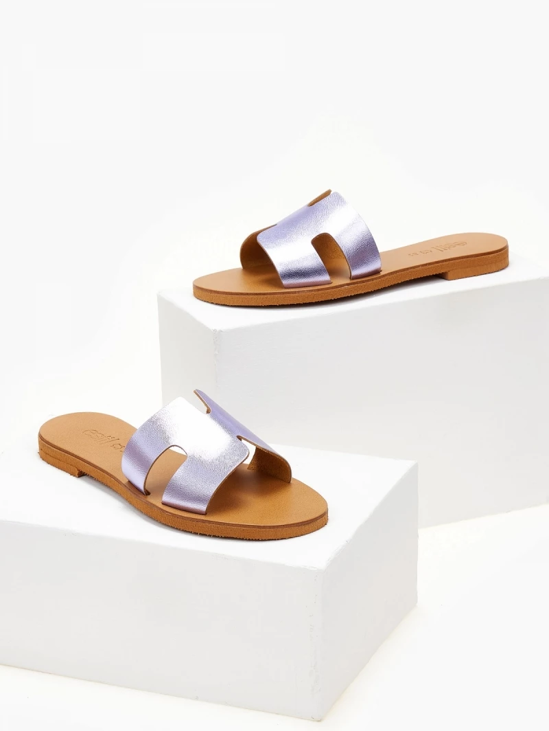 Σανδάλια δερμάτινα ESTIL. Έχουν φαρδιά φάσα με ανοίγματα σε μεταλλικά χρώματα. Δερμάτινος πάτος. Ελληνικής κατασκευής,χειροποίητα.