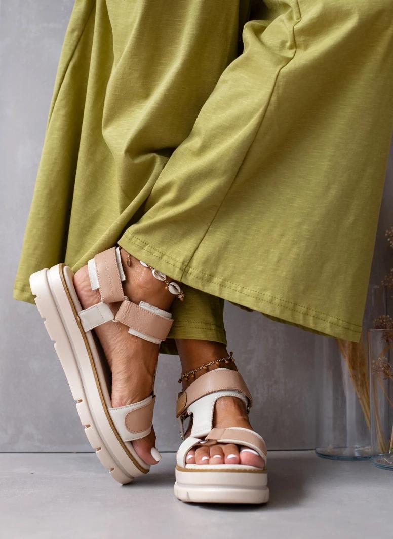 Πέδιλα δερμάτινα με velcro στο ύψος του αστραγάλου. Ο πάτος είναι δερμάτινος με ενίσχυση.
