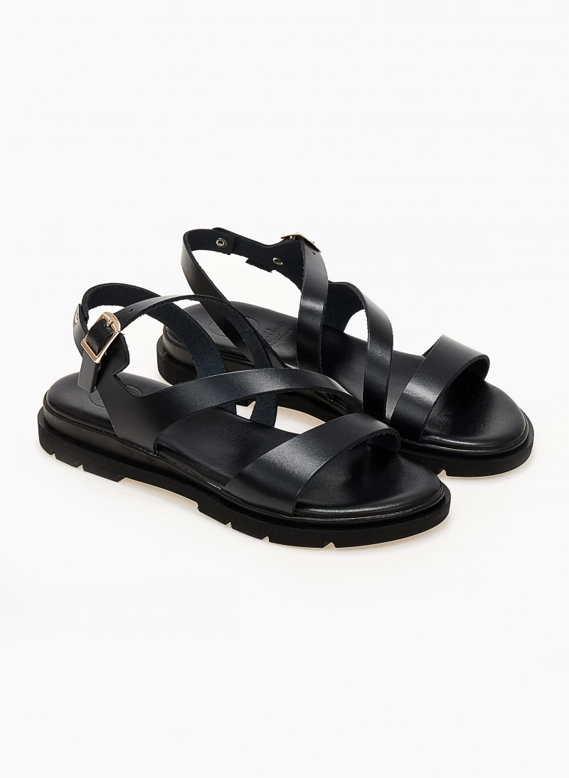 Σανδάλια δερμάτινα TFP με δέσιμο στο πλάι. Έχουν λοξό λουράκι στο κουτεπιέ. Ανατομική σόλα με τρακτερωτό σχέδιο. Δερμάτινος πάτος με ανατομική ενίσχυση. Ελληνικής κατασκευής.