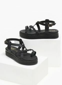 The Fashion Project Σανδάλια δερμάτινα με κοτσιδάκι Estil – Μαύρο
