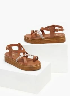 The Fashion Project Σανδάλια δερμάτινα με κοτσιδάκι Estil – Ταμπά