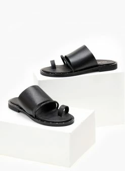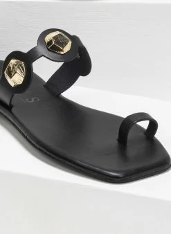 Σανδάλια δερμάτινα με πολύγωνο μεταλλικό στοιχείο Iris – Μαύρο