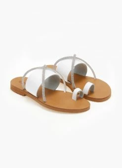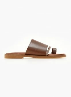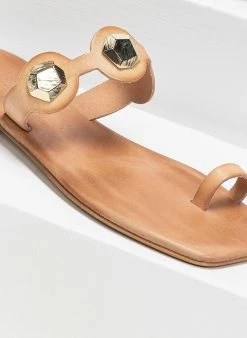 Σανδάλια δερμάτινα με πολύγωνο μεταλλικό στοιχείο Iris – Φυσικό