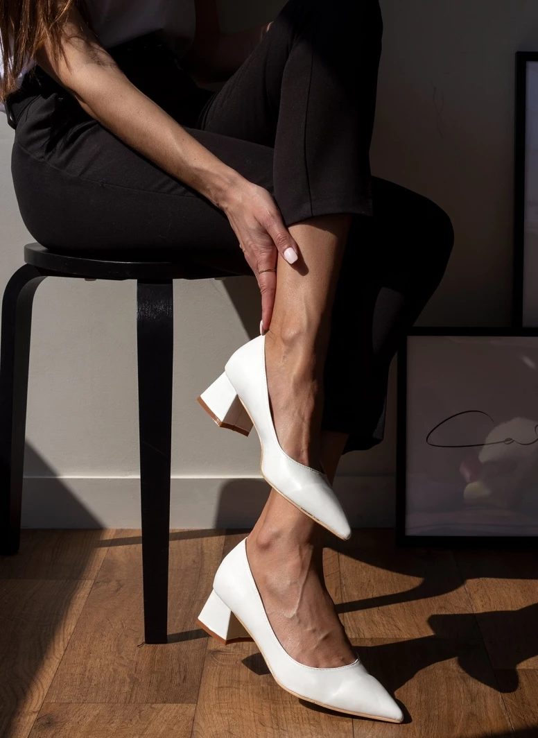 Γόβες με χαμηλό τετράγωνο τακούνι.Μυτερή φόρμα,