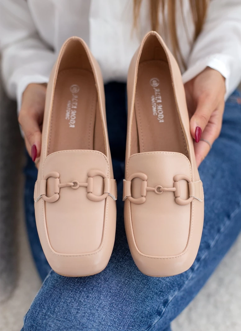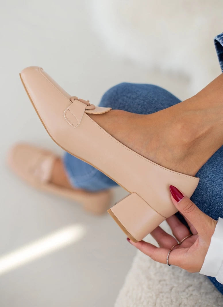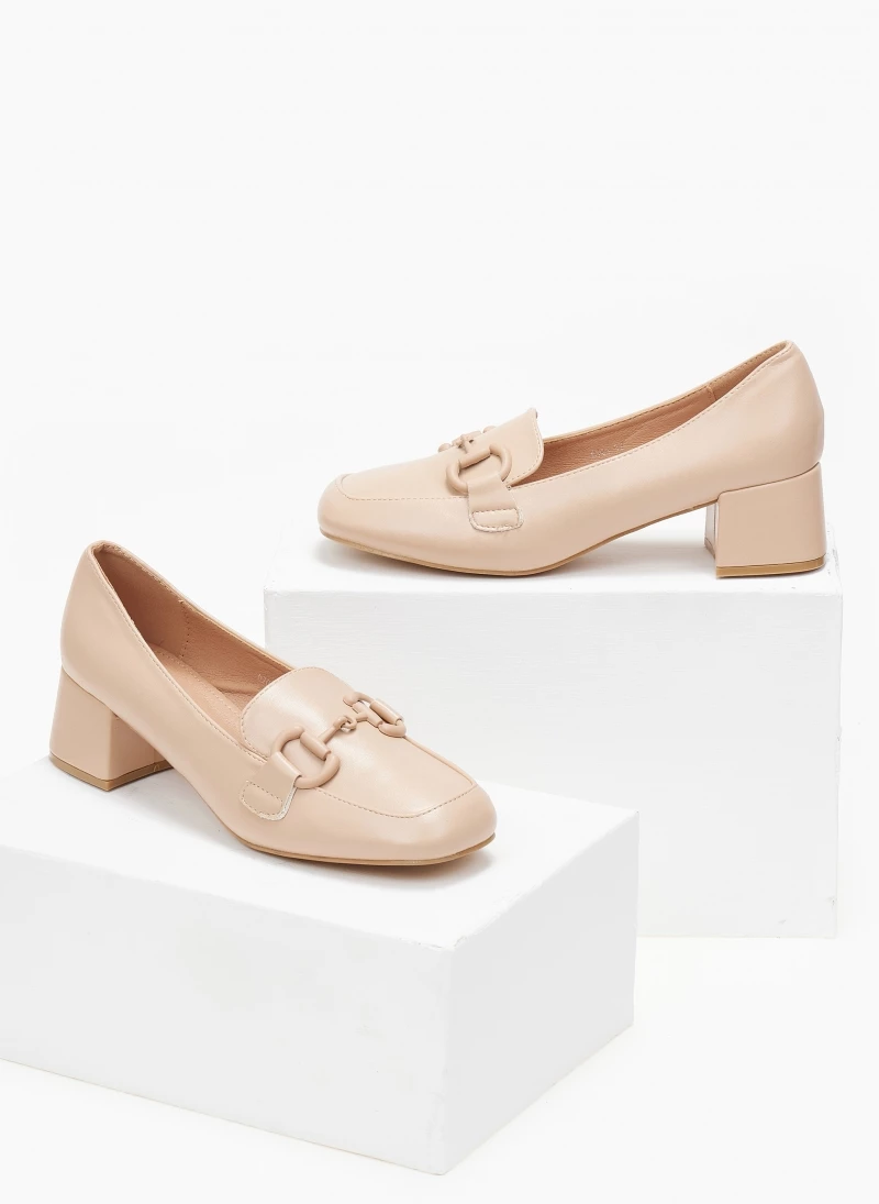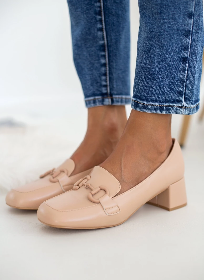Loafers με χαμηλό τετράγωνο τακούνι. Έχουν αγκράφα στο ίδιο χρώμα.