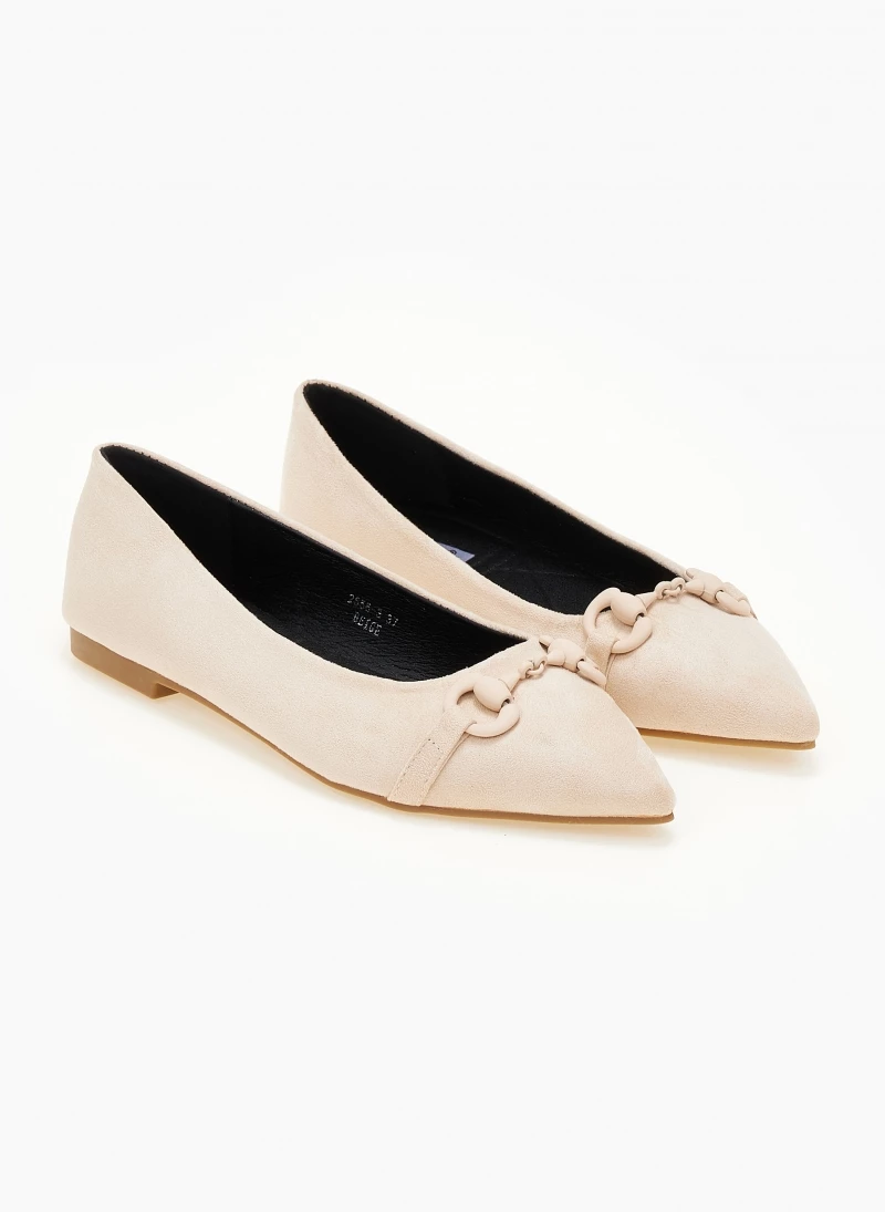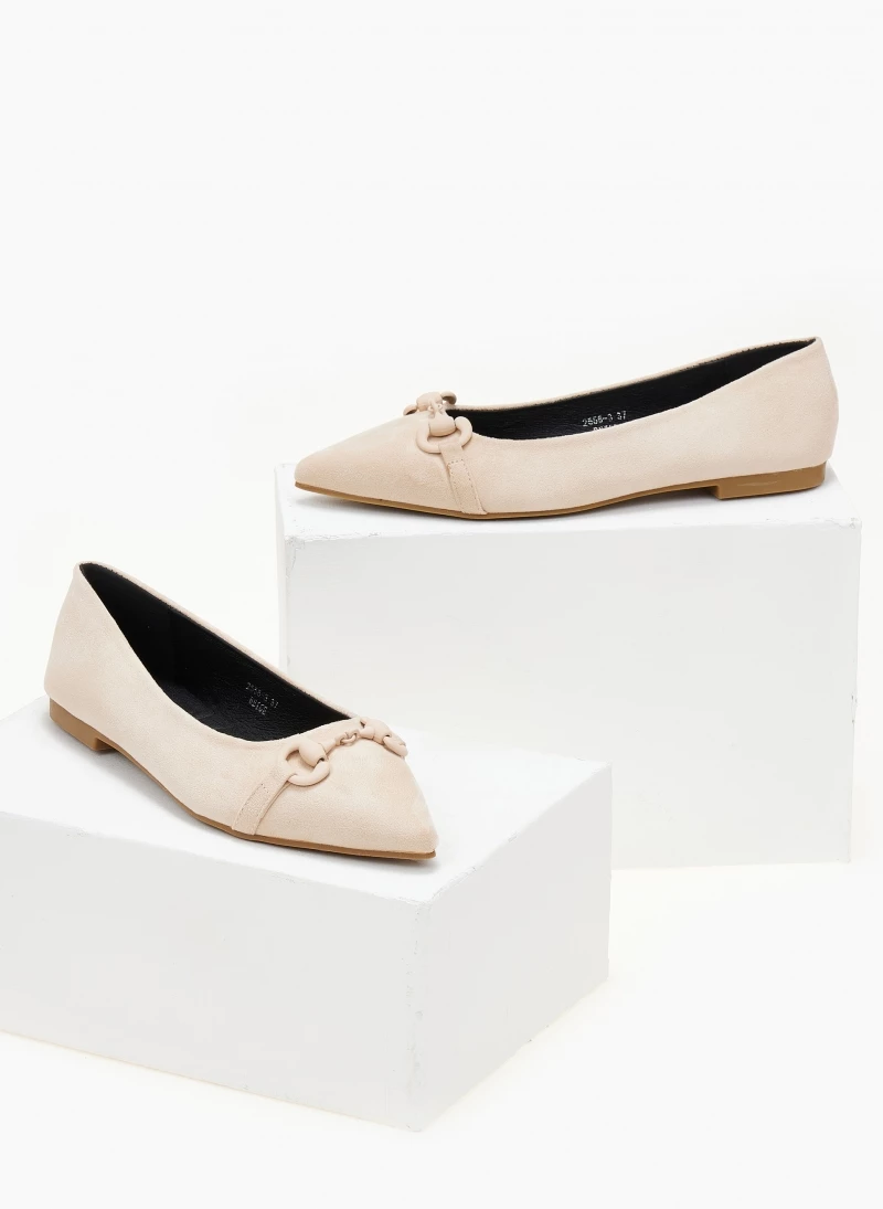 Μπαλαρίνες μυτερές με διακοσμητικό στο ίδιο χρώμα. Έχουν μαλακή σόλα από λάστιχο.