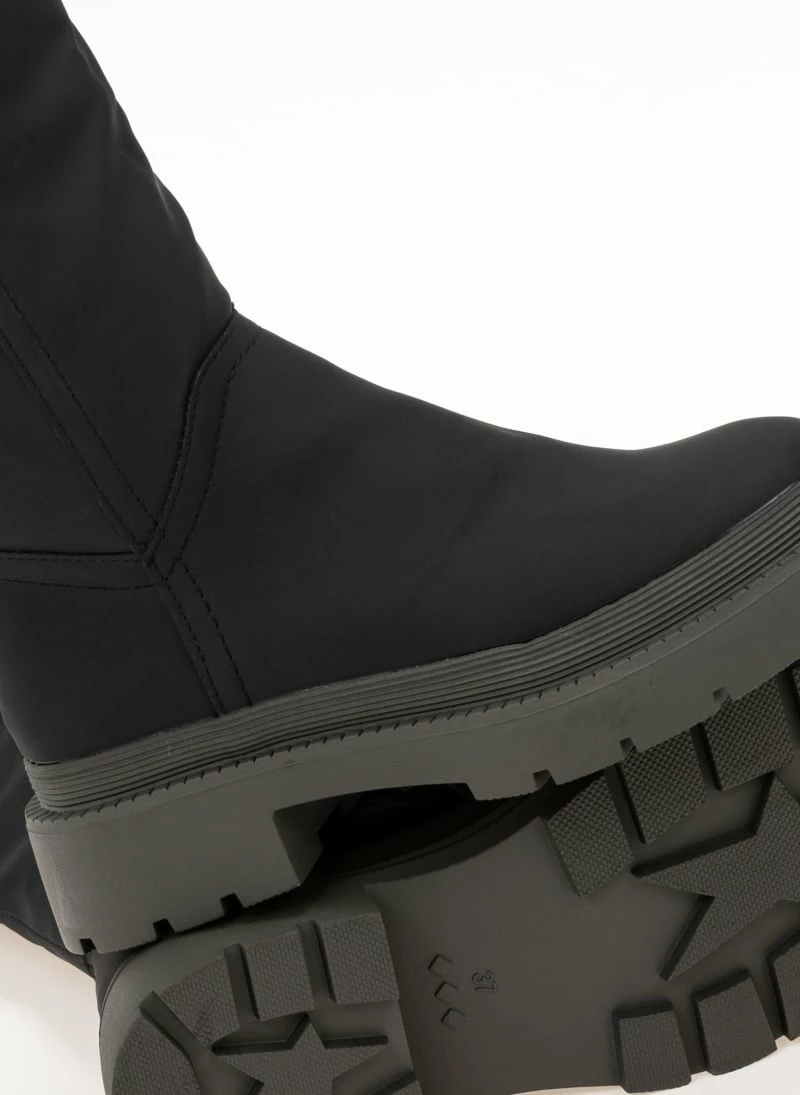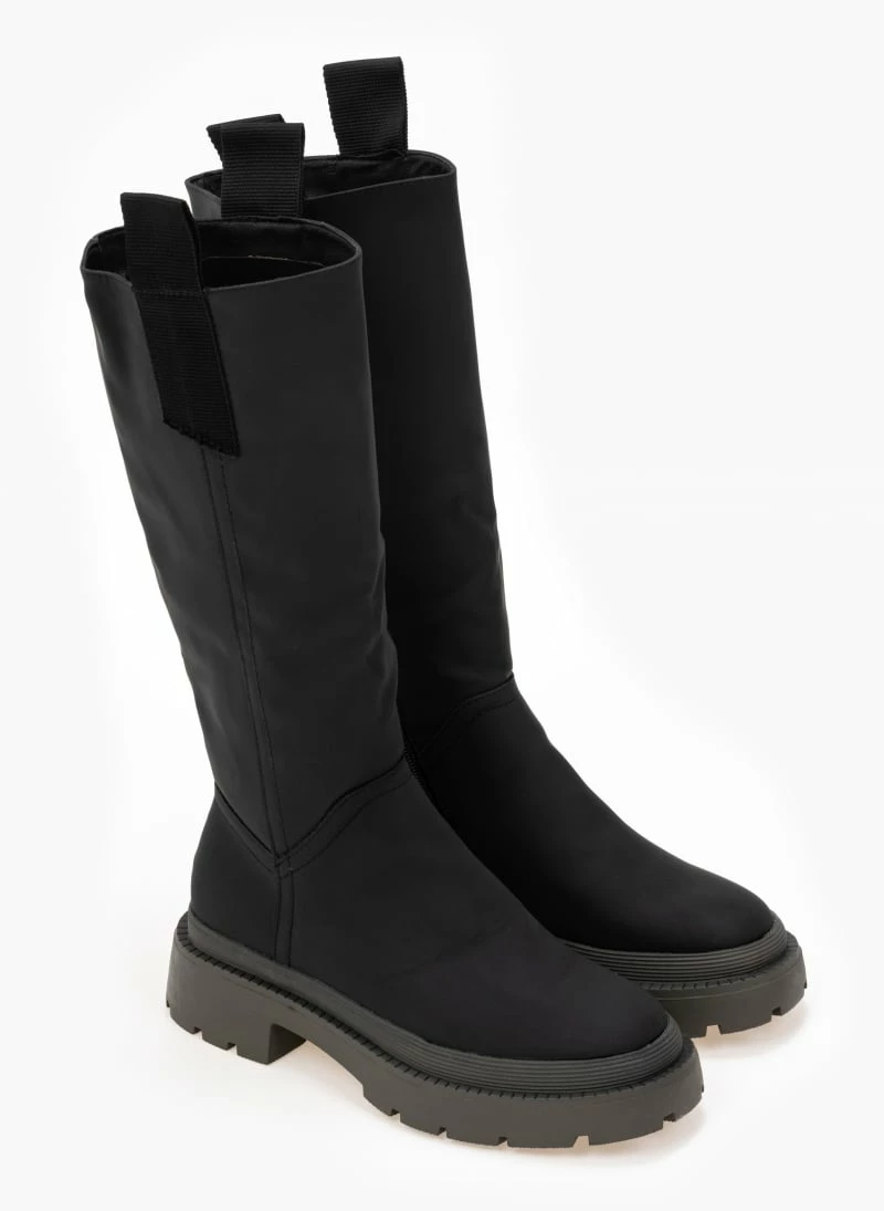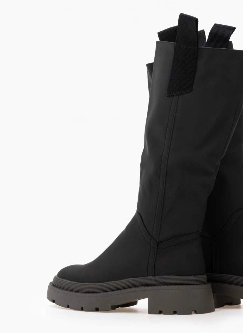 Μπότες chunky με υφασμάτινα θηλάκια. Στρογγυλή γραμμή.