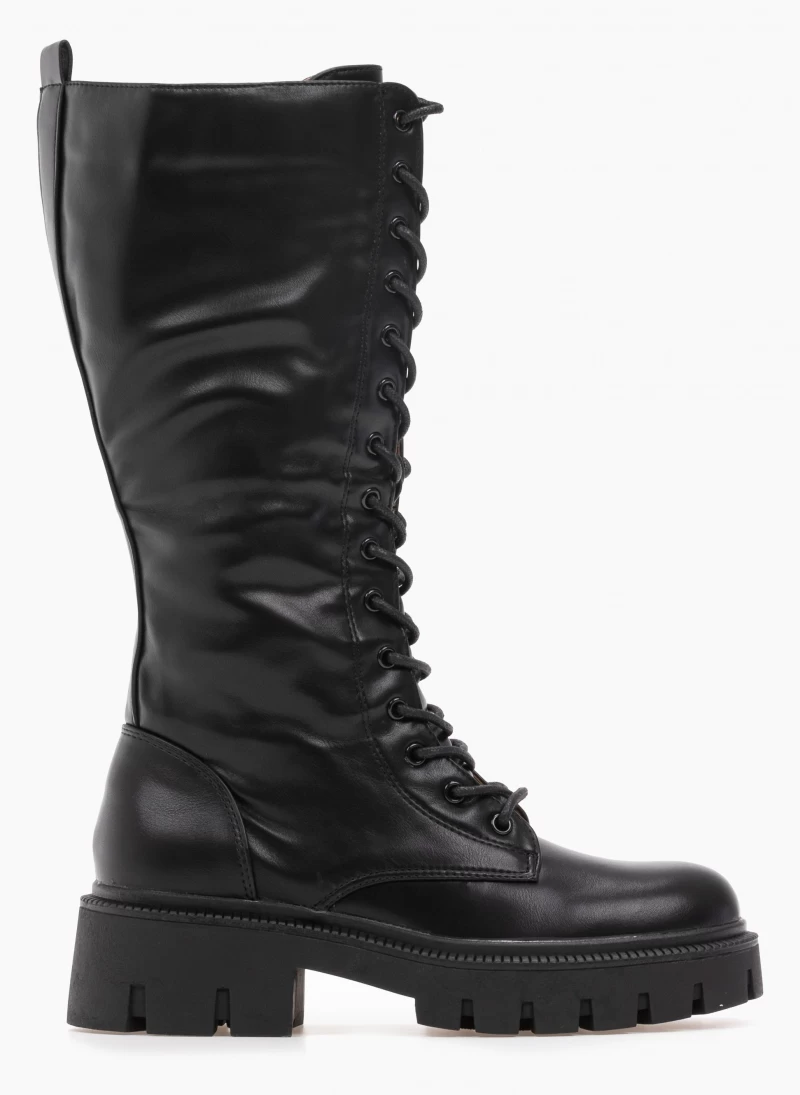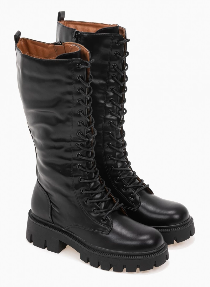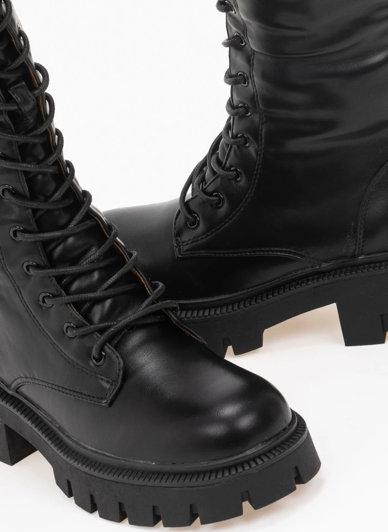 Casual μπότες με τρακτερωτή σόλα και κορδόνια. Στρογγυλή γραμμή.